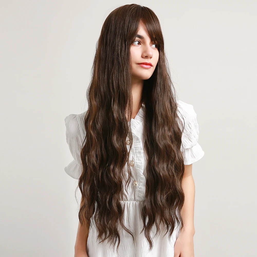 Длинные коричневые волнистые синтетические парики с челкой henmargu...