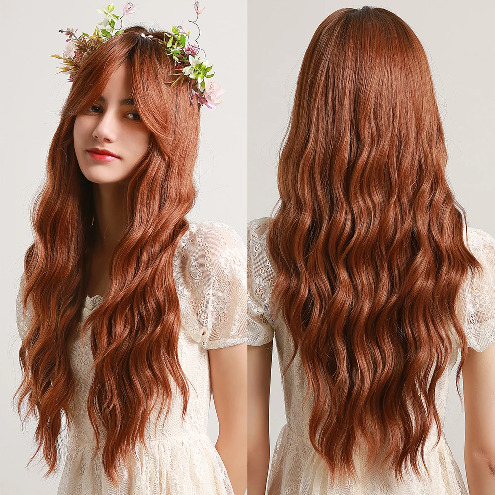 Медно-коричневый синтетический парик длинные волнистые волосы парик...
