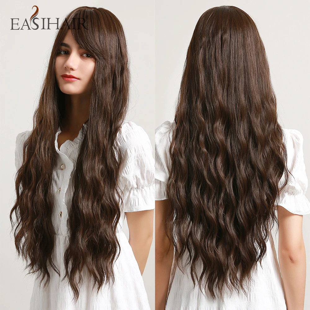 EASIHAIR, длинные, темно-коричневые, волнистые, синтетические парики для женщин, Natyral, парики для волос с Said, челка, на каждый день, парики, термостойкие, косплей
