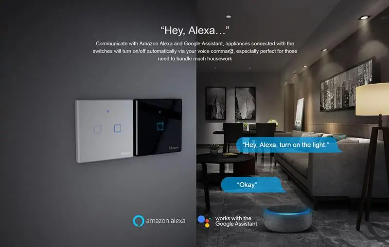 Настенный Смарт светильник ель Sonoff T0 T1 с поддержкой Wi-Fi и го...