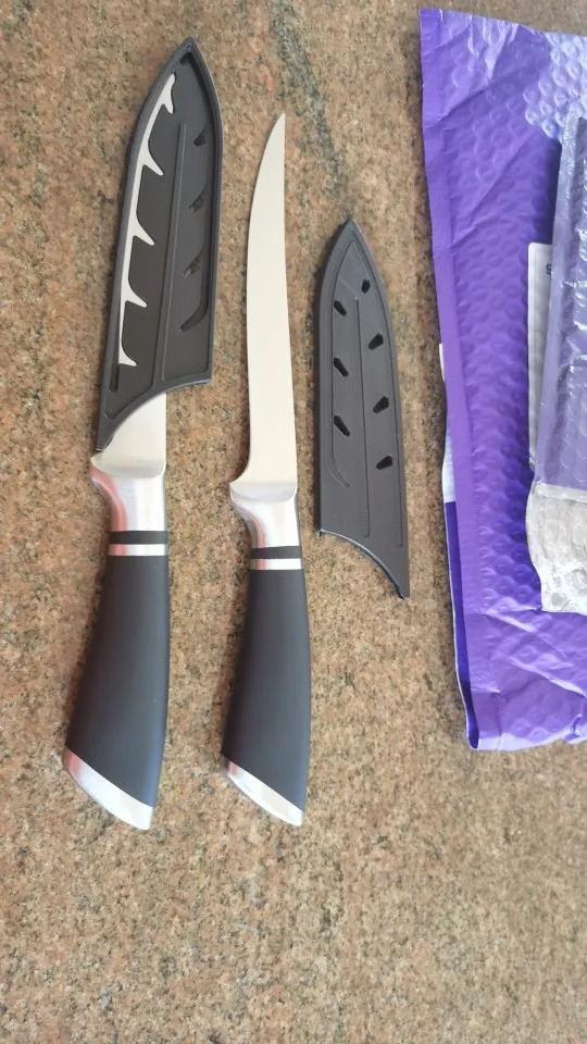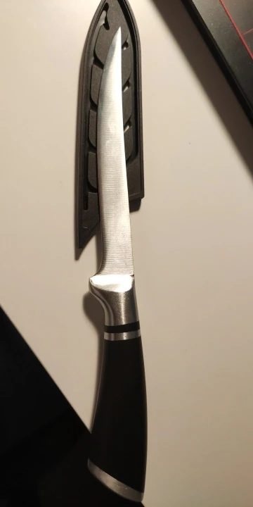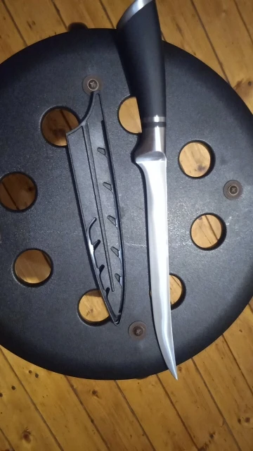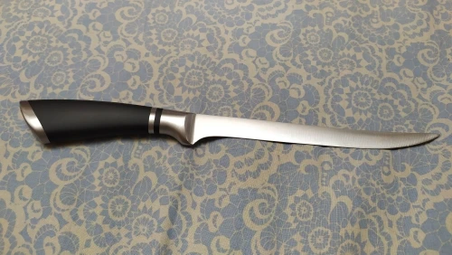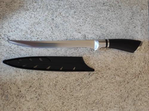 Нож отличный. Легкий, удобный. Твердость клинка как для кухонного ножа приличная. В деле еще не проверял, но как филейник для работы на кухне дома годится. Заказ отправили оперативно. Вроде все хорошо, НО. Есть одно маленькое но. Нож прислали не того размера. Заказывал 7дюймов, а получил меньший - 5 дюймов. Досадно. Удачи продавцу,
