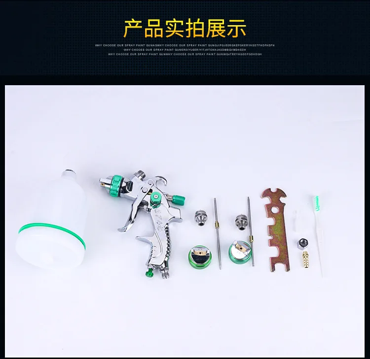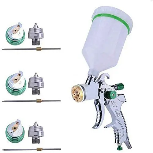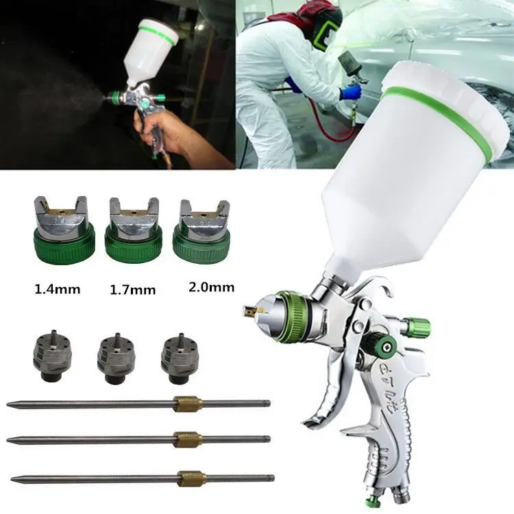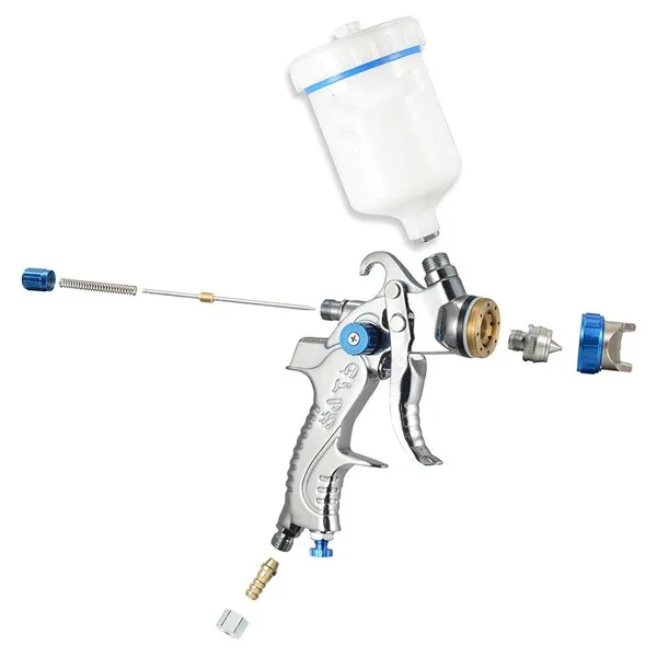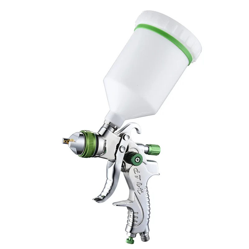 Параметры:Рекомендуется для идеального распыления базового покрытия, прокладок и других высоковязких покрытийПодходит для бытового и промышленного грунтовки, верхнего покрытия и детализации для автомобильной промышленности, оборудования и мебельной краскиХарактеристики продукции:Материал распылителя: алюминиевый сплавМатериал чашки: ПВХ пластикТип: высокий объем низкого давленияСопло жидкости: 1,4 мм, 1,7 мм, 2,0 ммРасход воздуха: 14.5CFMОперационной Давление: 2-3,5 барШирина узора: 160-240 ммРазмер бункера: диаметр 10 смВоздухозаборник: 1/4 дюймаЕмкость чашки: 600cc