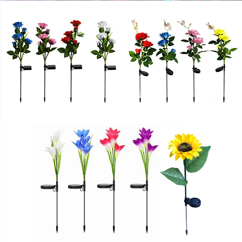 12 предмета подсолнечника Роза светодиодные фонари на солнечных батареях Фонари Водонепроницаемый солнечные светодиодные фонари на открытом воздухе Солнечная гирлянда украшения сада уличного фонаря