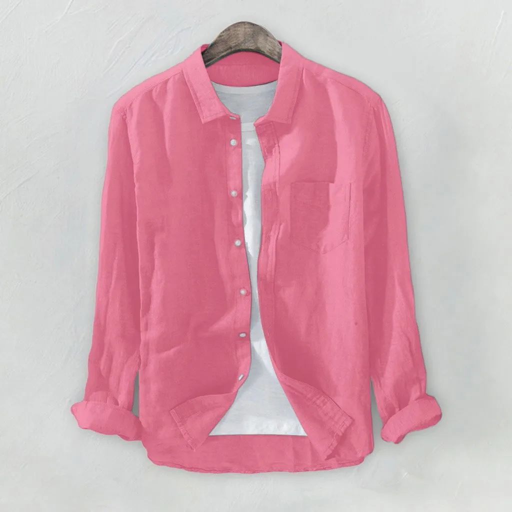 Рубашка Мужская льняная на пуговицах, тонкая дышащая, однотонная, с...