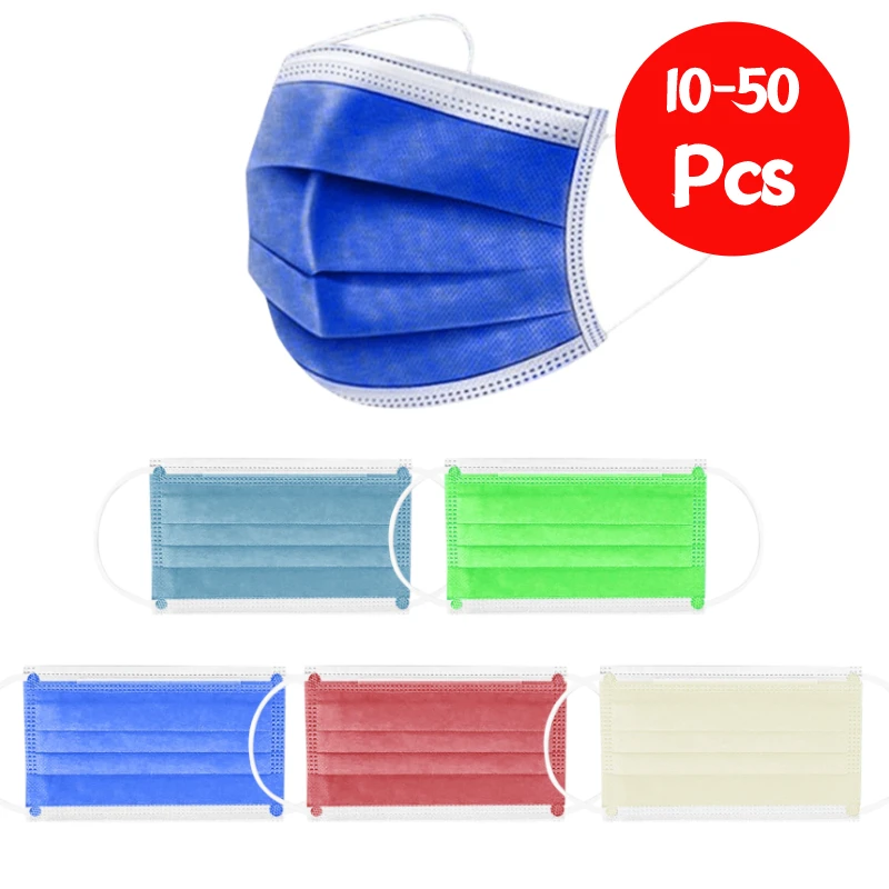 10/50 шт в наборе, Для женщин человек сплошной маска одноразовая маска для лица 3Ply петли уха Anti-PM2.5 маска
