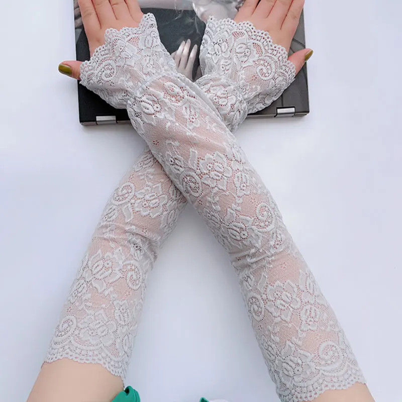 Женские кружевные перчатки с эластичным рукавом для вождения и велоспорта, длинные кружевные рукава с открытыми пальцами, закрытые летние кружевные перчатки для защиты от солнца