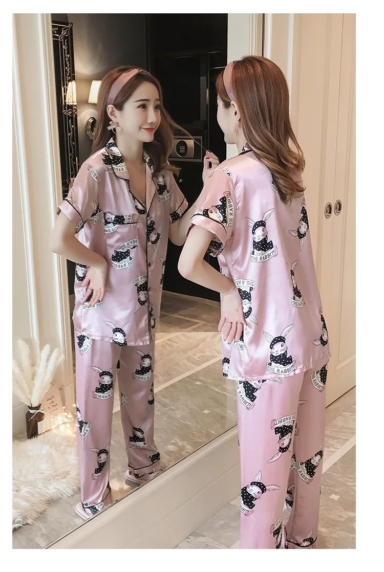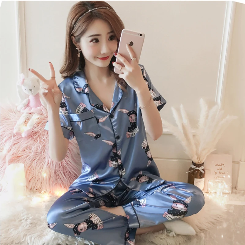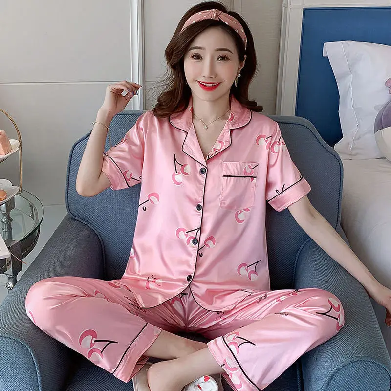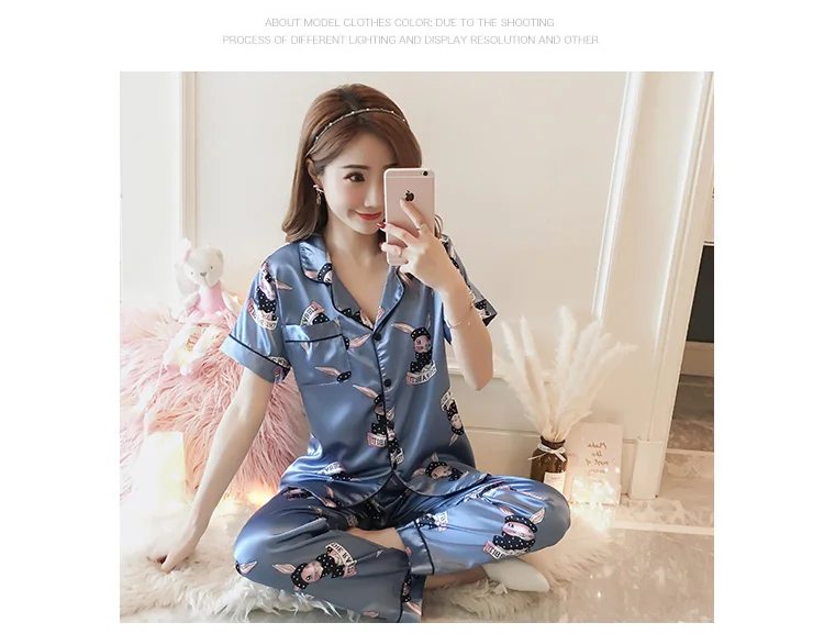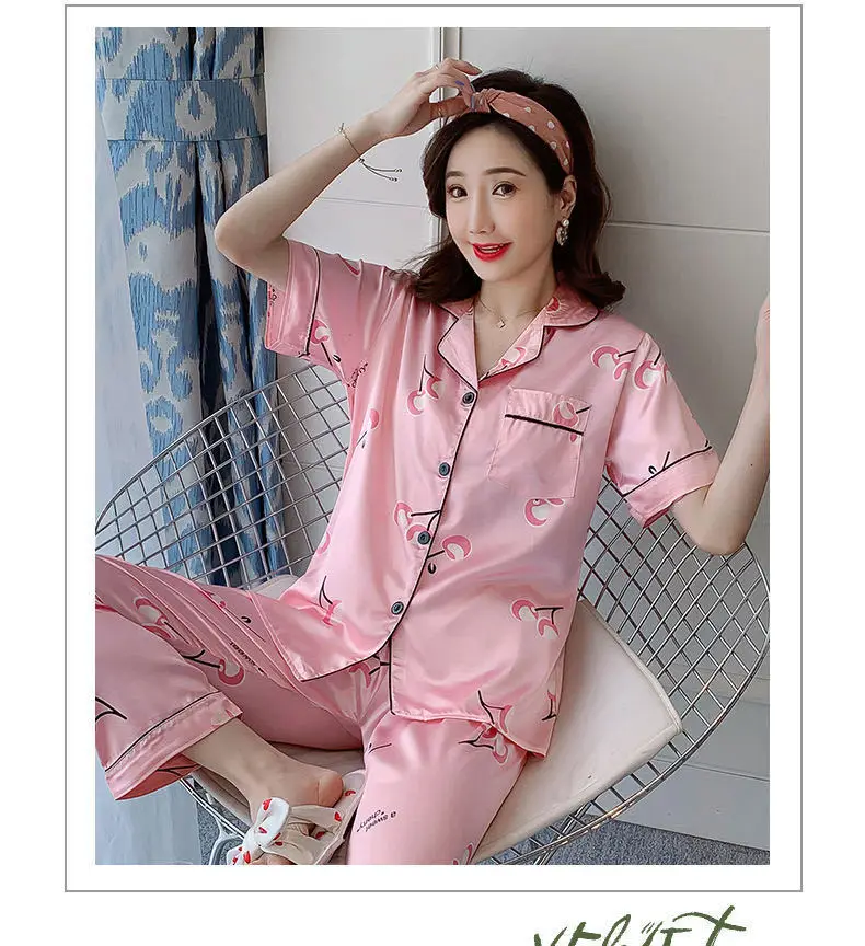 Шелковая пижама с коротким рукавом, мягкая женская летняя Домашняя ...