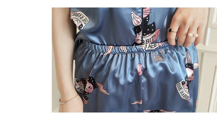 Новый летний женский пижамный комплект сексуальная шелковая атласна...