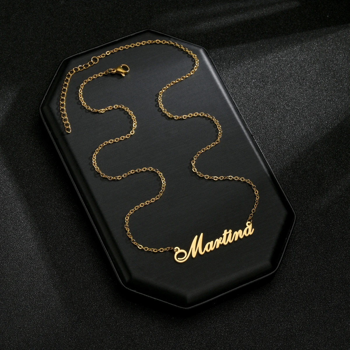 Название: Goxijite пользовательское имя ожерелье для женщин Персонализированные нержавеющей стали Cursive письмо кулон-табличка с именем ожерелье ювелирные изделия подарок