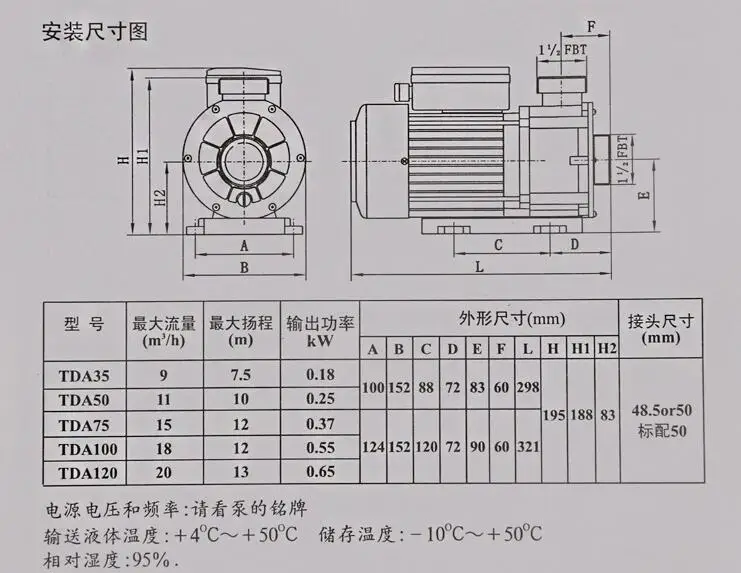 Водяной насос для бассейна, джакузи, водный насос для аквакультуры, циркуляционный насос для рыбного пруда, морской бассейн TDA75TDA50