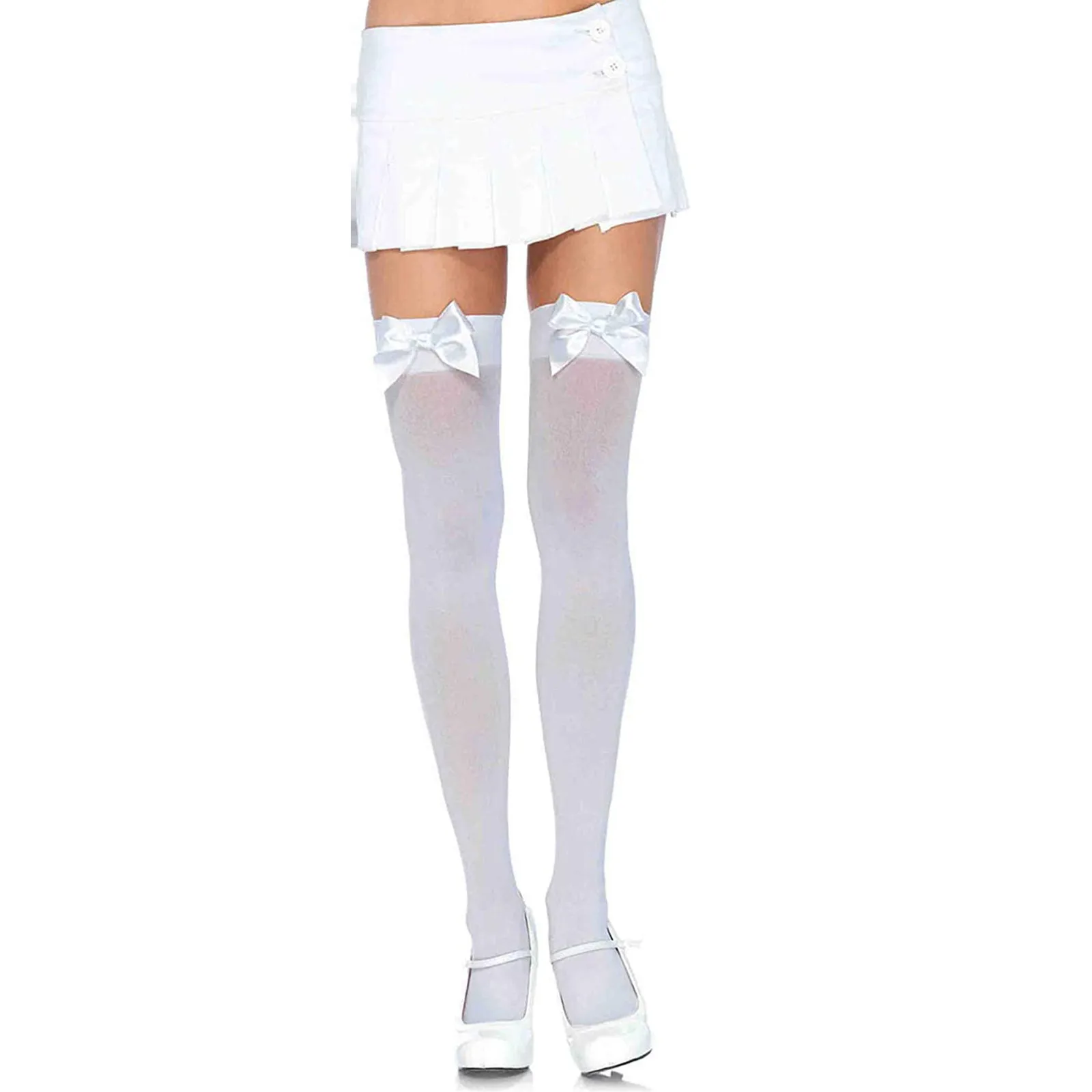 Женские атласные чулки с бантом, милые сексуальные длинные прозрачные чулки до бедра