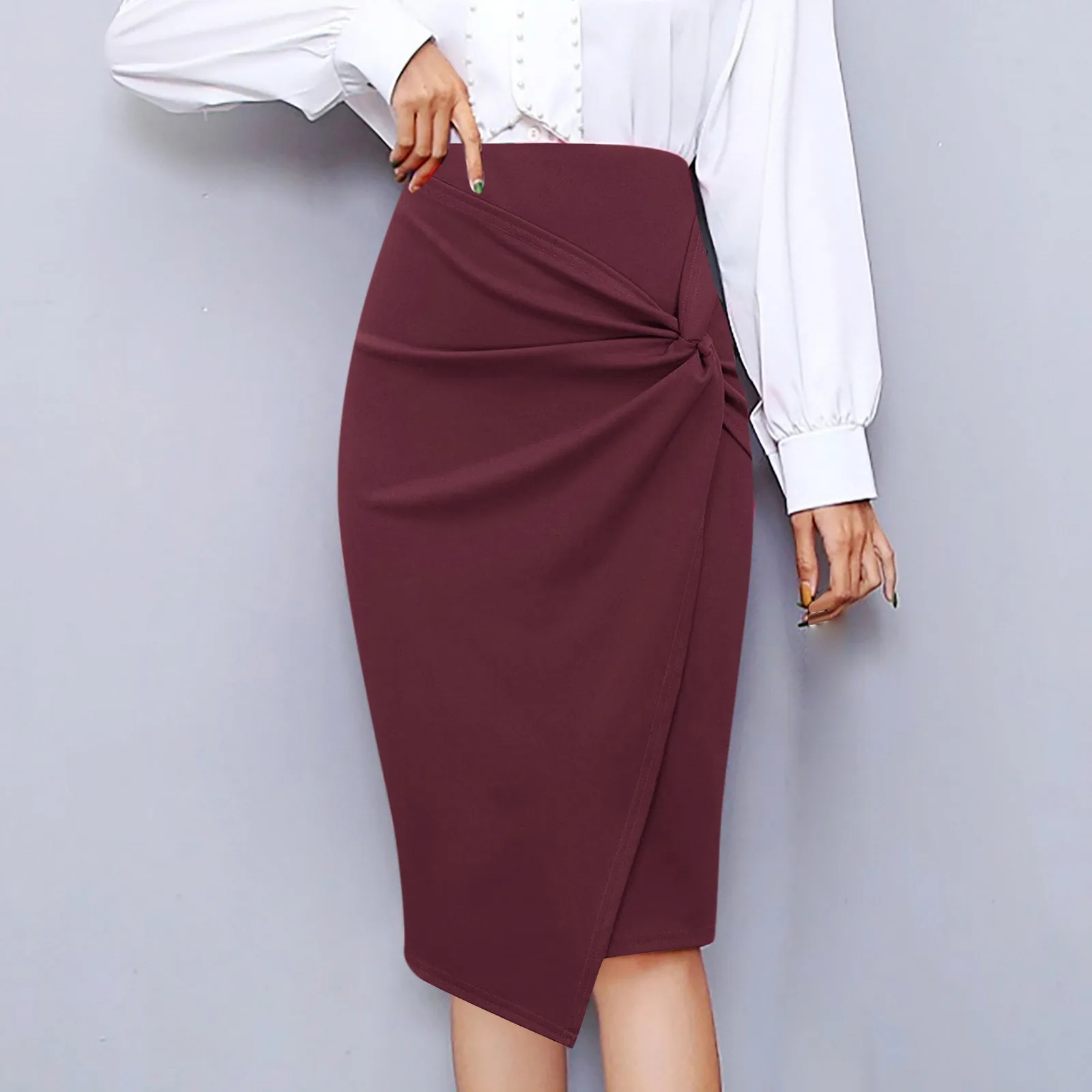 Женские юбки, однотонная Асимметричная юбка-карандаш с запахом спер...