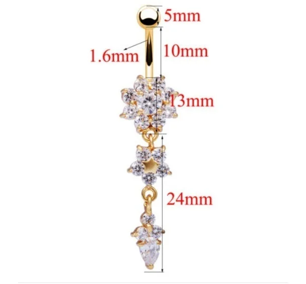 Позолоченные пупочные гвозди с кисточками, материал изделия нержавеющая сталь и стразы, anti-allergic.Korean стиль, изысканный и красивый внешний вид, модный и уникальный.