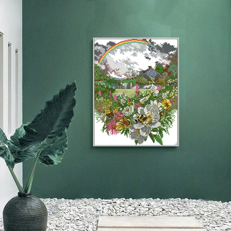 Набор для вышивки крестиком Joy Sunday, Набор для вышивки крестиком с радужным пейзажем, набор для рукоделия, холст с принтом