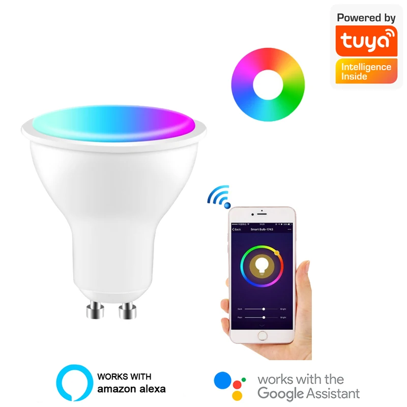Прожсветильник GU10, Wi-Fi, умная светильник почка 5 Вт, RGB + CW 2700-6500K, умная лампочка с дистанционным управлением через приложение, RGB-лампа для Alexa, Google Home