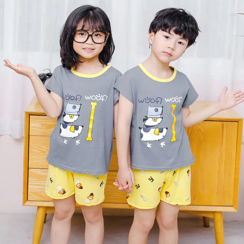 Летний пижамный комплект для мальчиков и девочек, детская одежда с ...