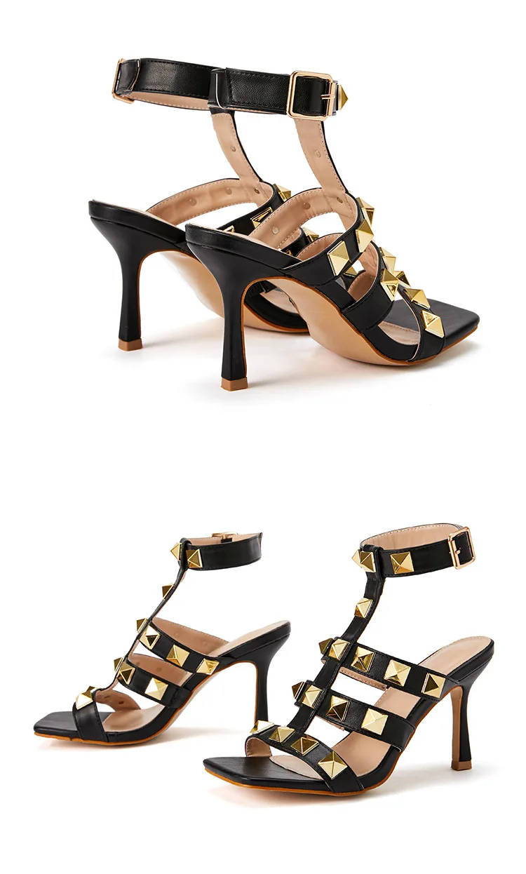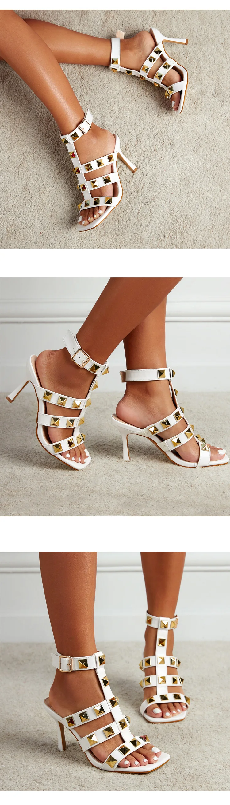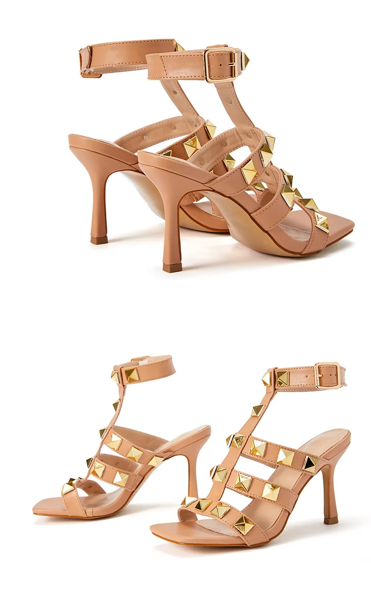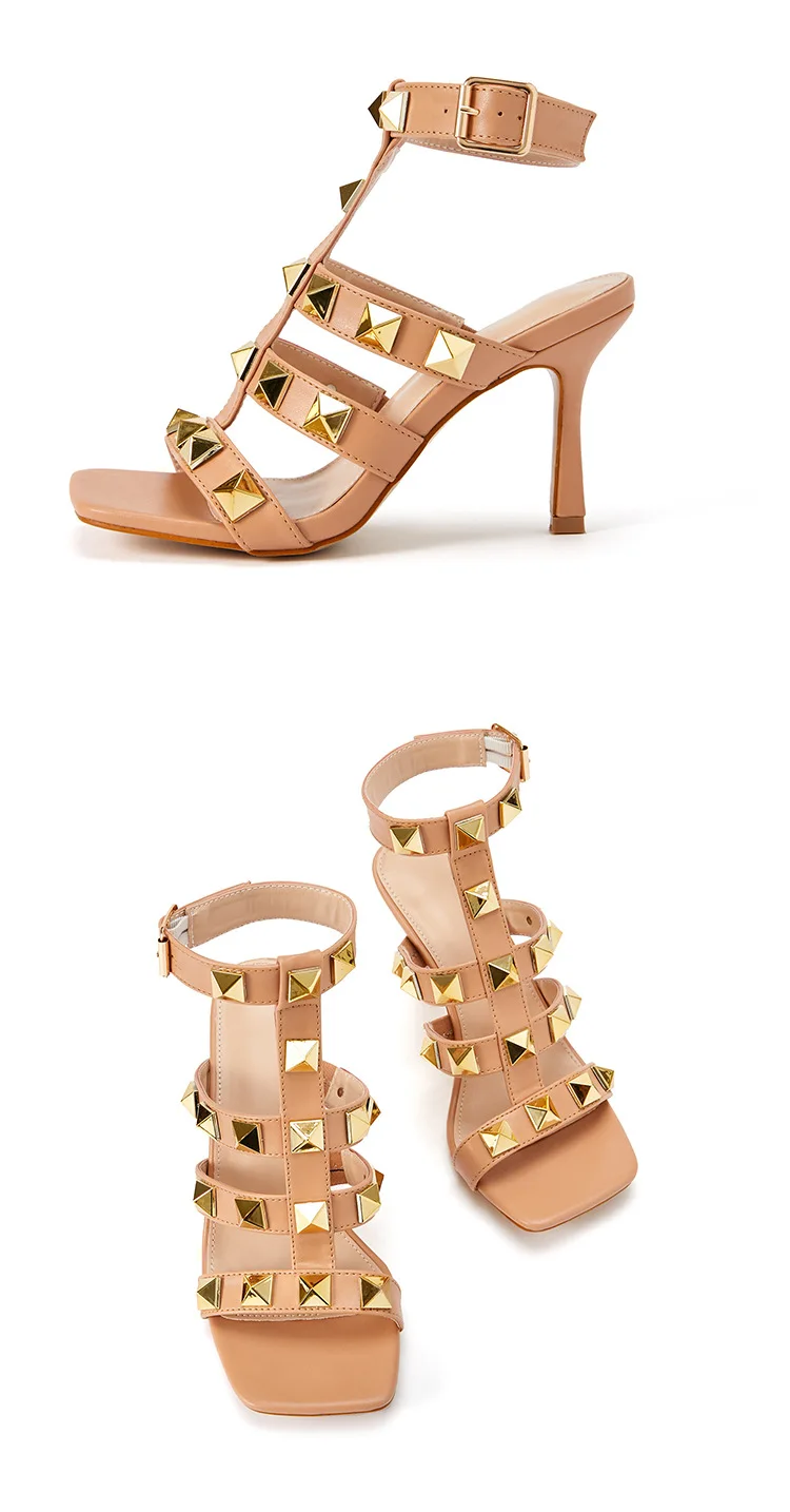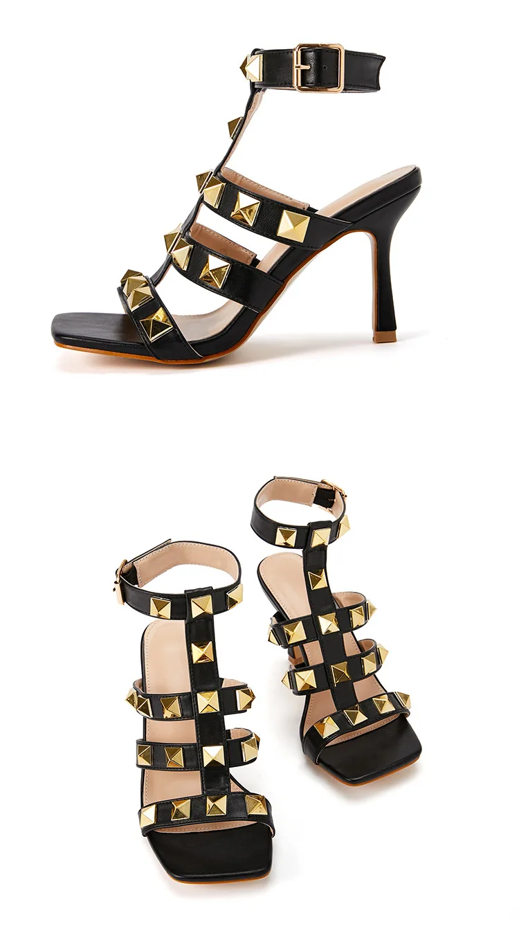 Женские классические туфли-лодочки 2021 металлические штифты заклепки на высоких каблуках с ремешками Galdiator сандалии с пряжкой ремешком на щиколотке