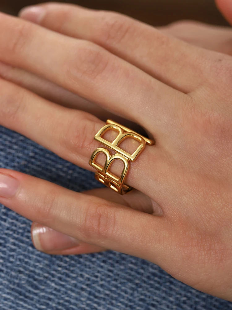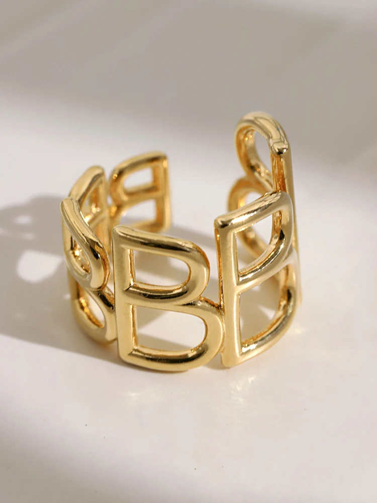 Регулируемое кольцо Flashbuy в форме буквы B, металлическое Открытое кольцо, модные ювелирные украшения 2021