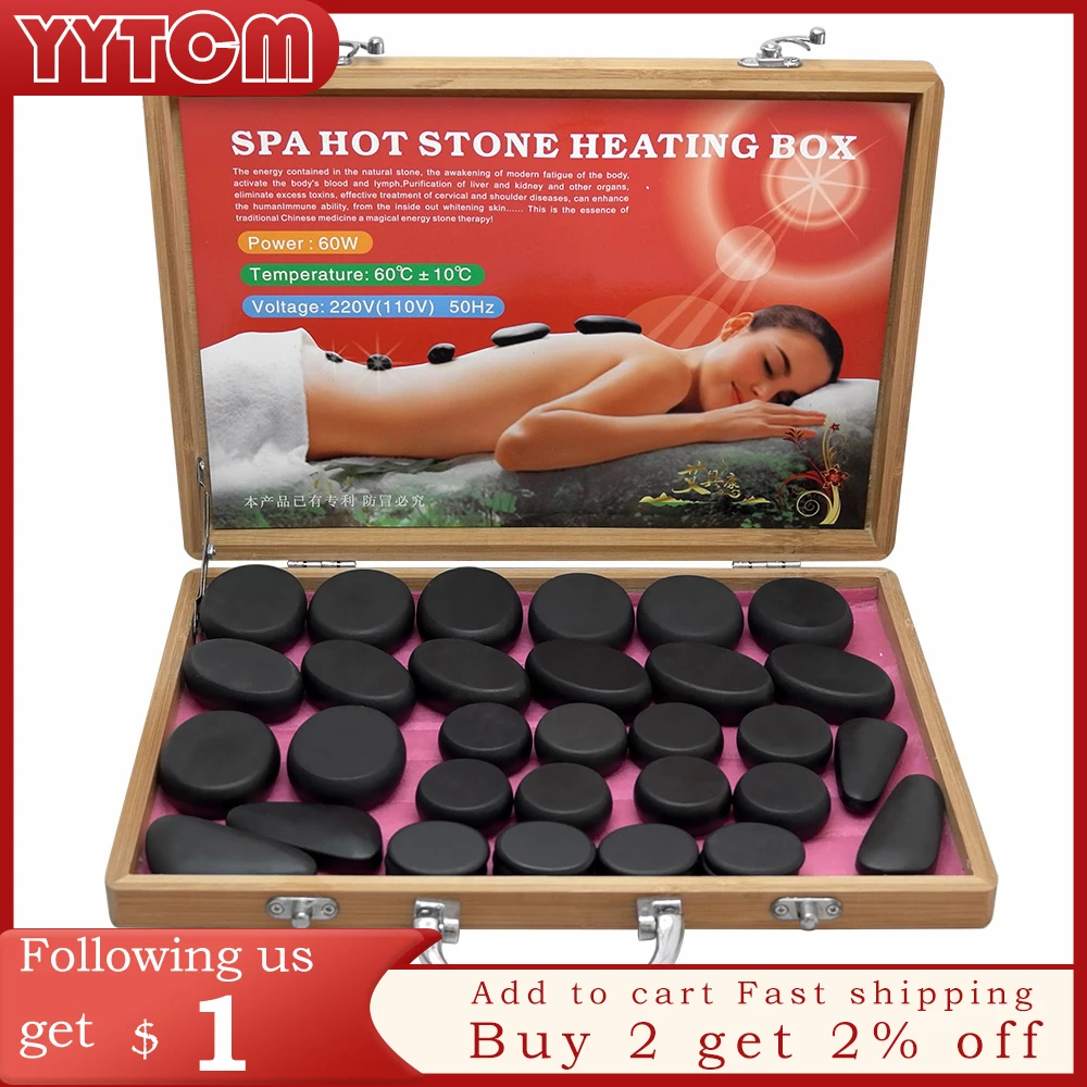 Tontin 38 шт.компл. камень для массажа тела горячий камень с 220V110V бамбука отопление коробка снять стресс боли в спине здравоохранения