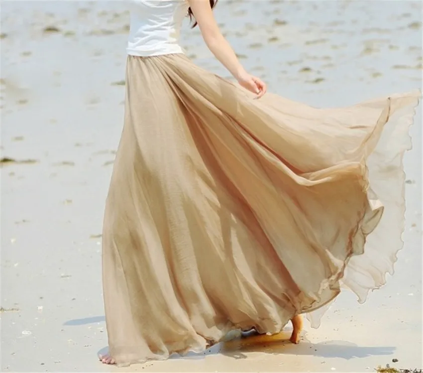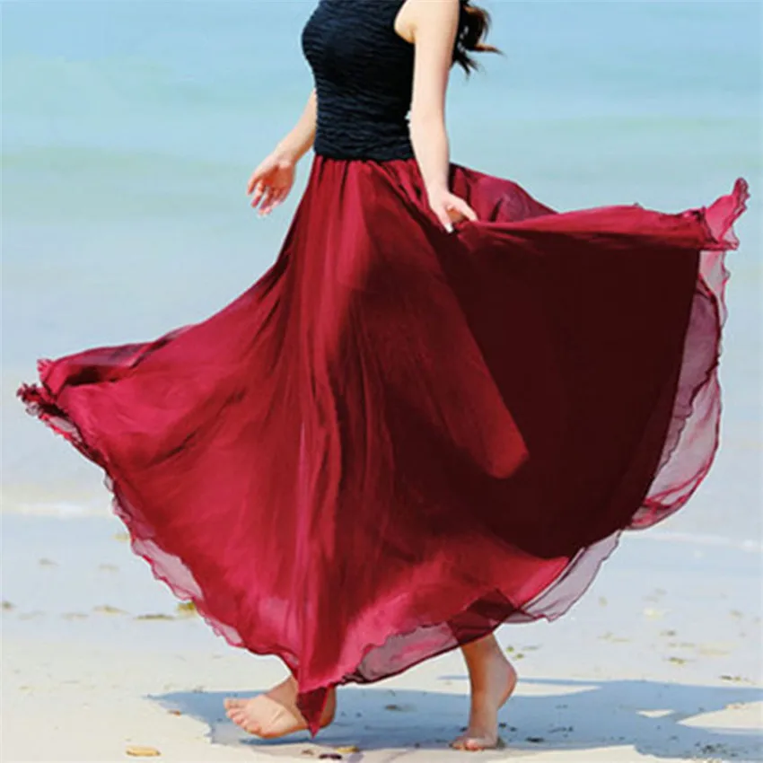 Женская шифоновая юбка с завышенной талией, длинная юбка в богемном стиле, макси-юбка в стиле бохо, лето 2020