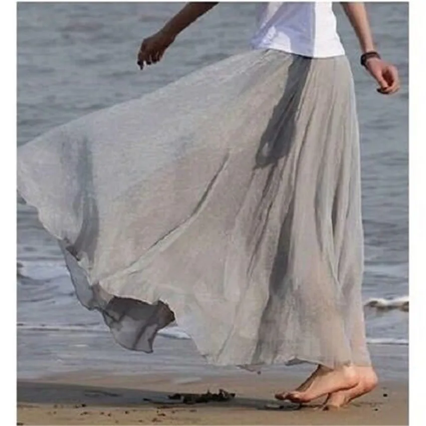 Женская шифоновая юбка, длинная белая пляжная юбка с высокой талией...