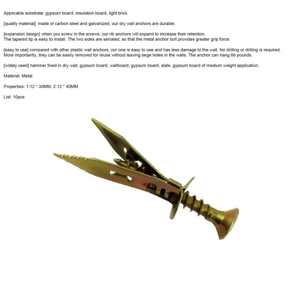 10 шт. саморезы Расширительная конструкция прочные металлические простые в эксплуатации многоразовые саморезные анкеры набор для дома