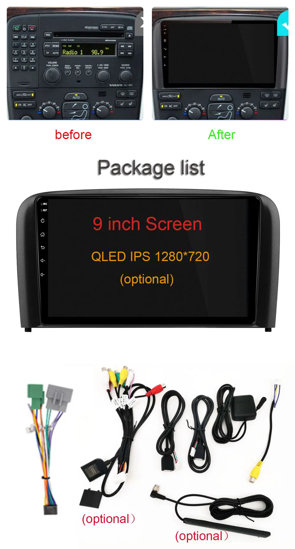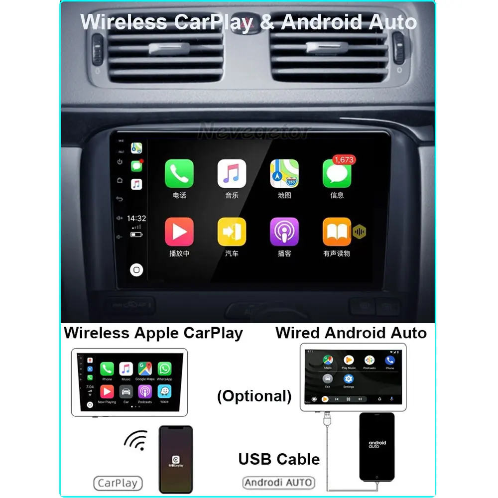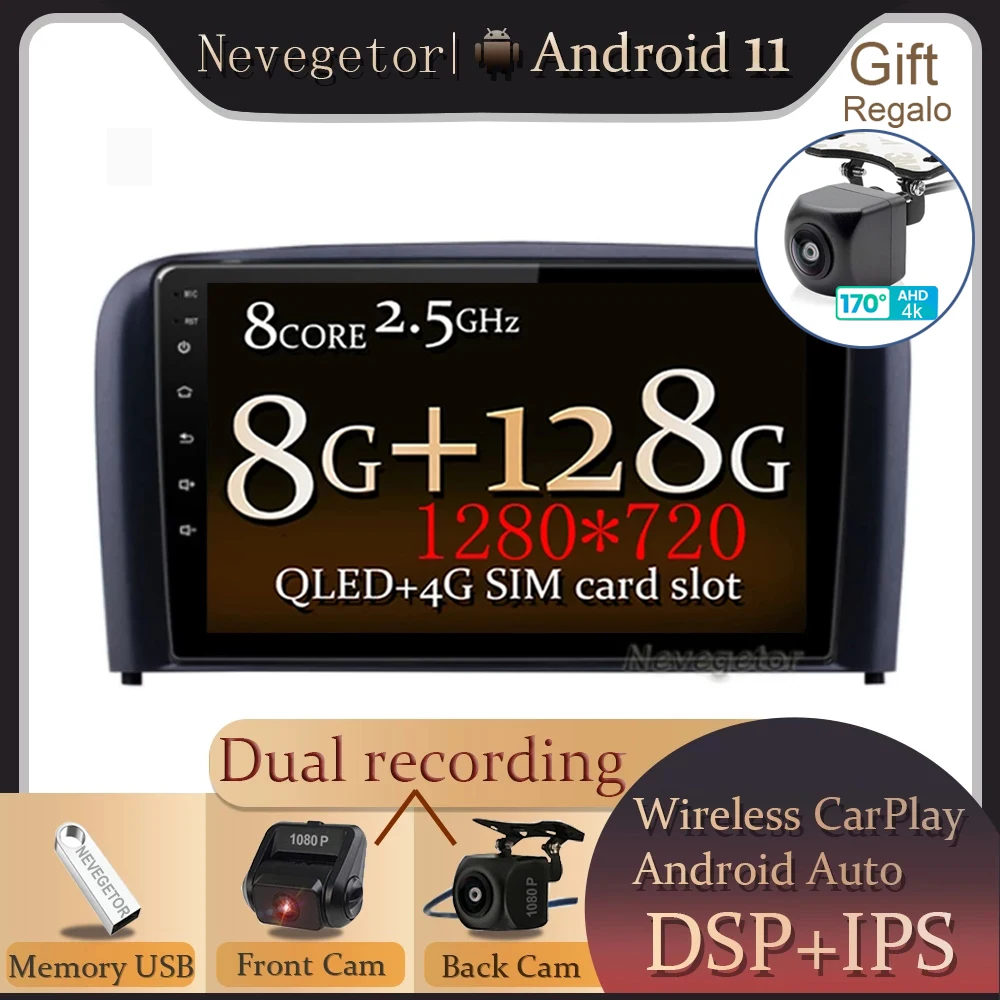 Автомагнитола 2DIN, 8 + 128 ГБ, Android 11, GPS, RDS, DSP, мультимедийный плеер для Volvo S80, 2004, 2005, 2006, CarPlay, без DVD