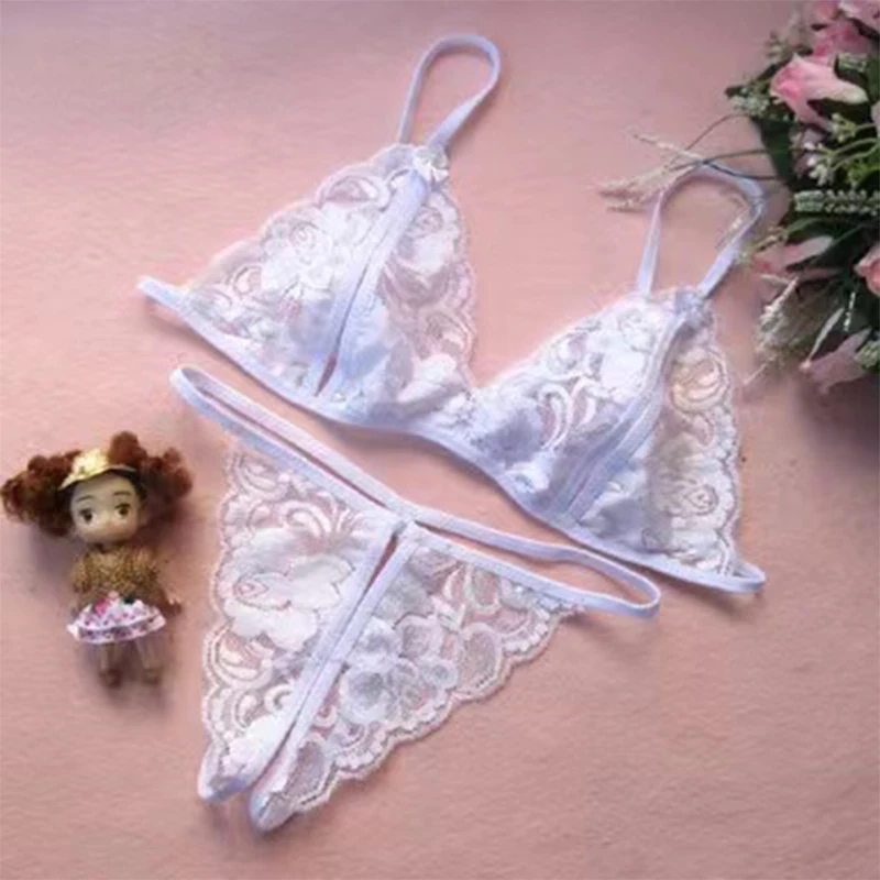 Комплект сексуального нижнего белья без косточек, кружевные трусики, сексуальные женские трусики с открытыми плечами, женские кружевные трусики с цветочным рисунком, бюстгальтер из двух частей