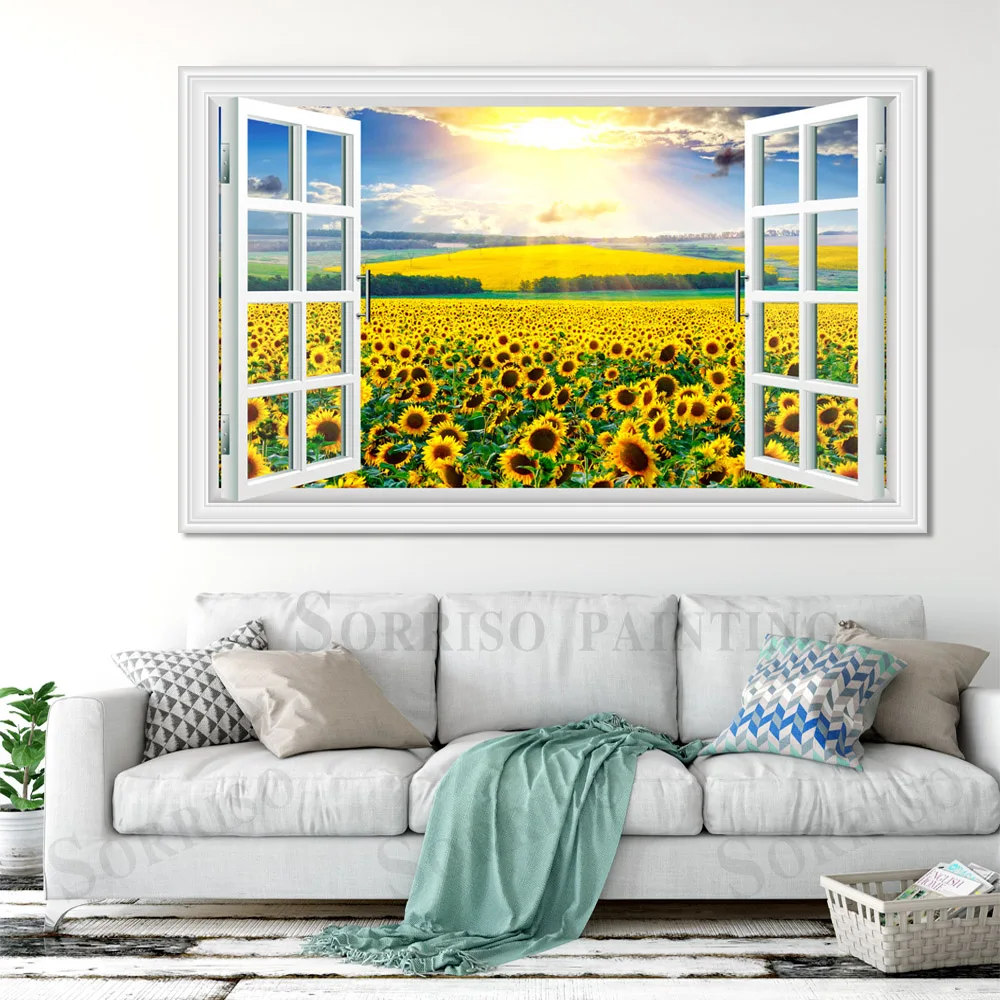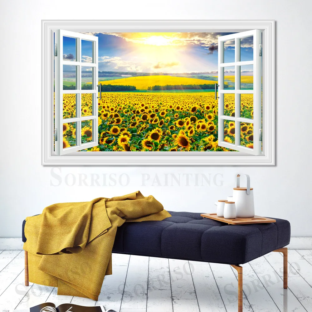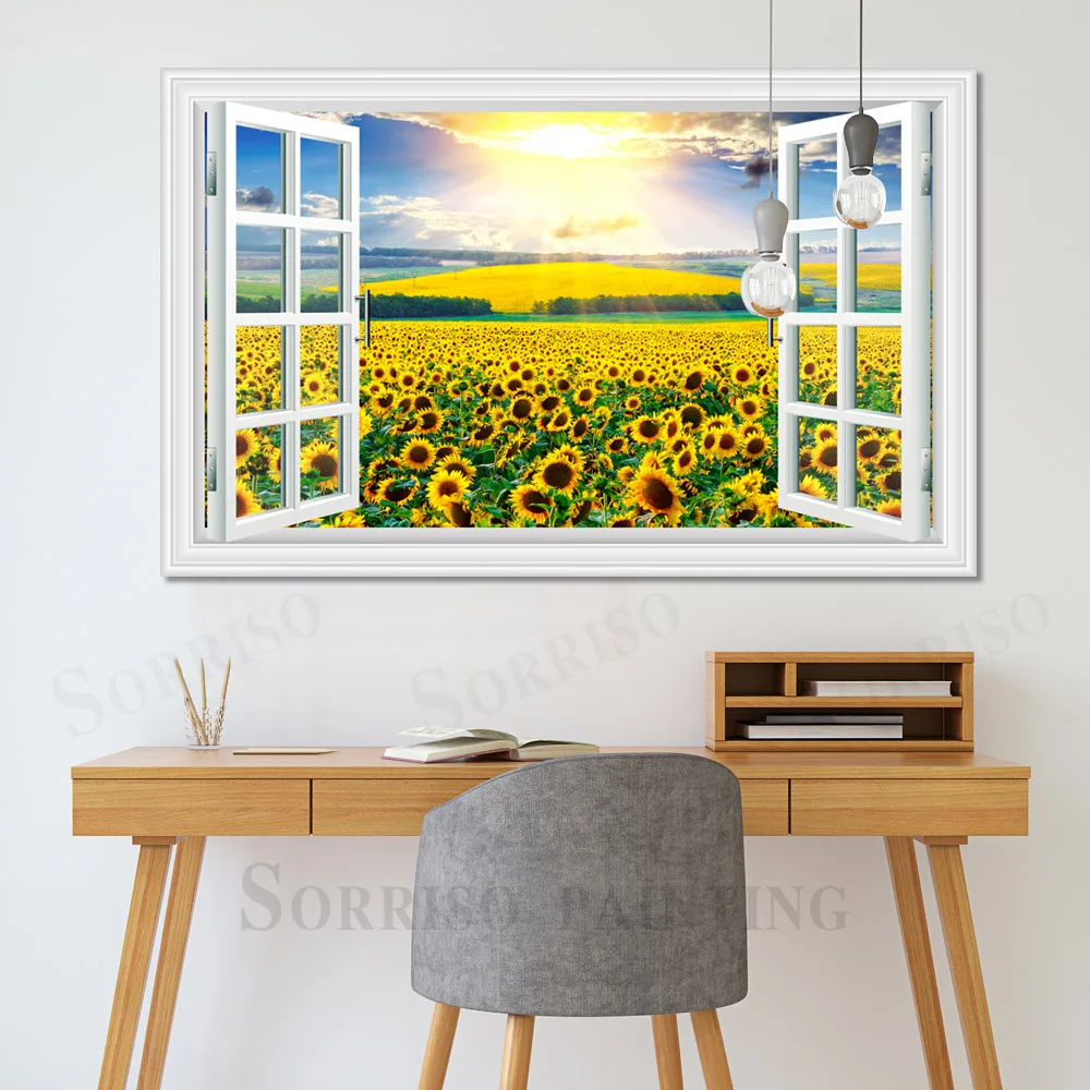 Лаванда Подсолнух цветы имитация окна дизайн стены Искусство Холст живопись плакаты и принты картины Декор для дома гостиной