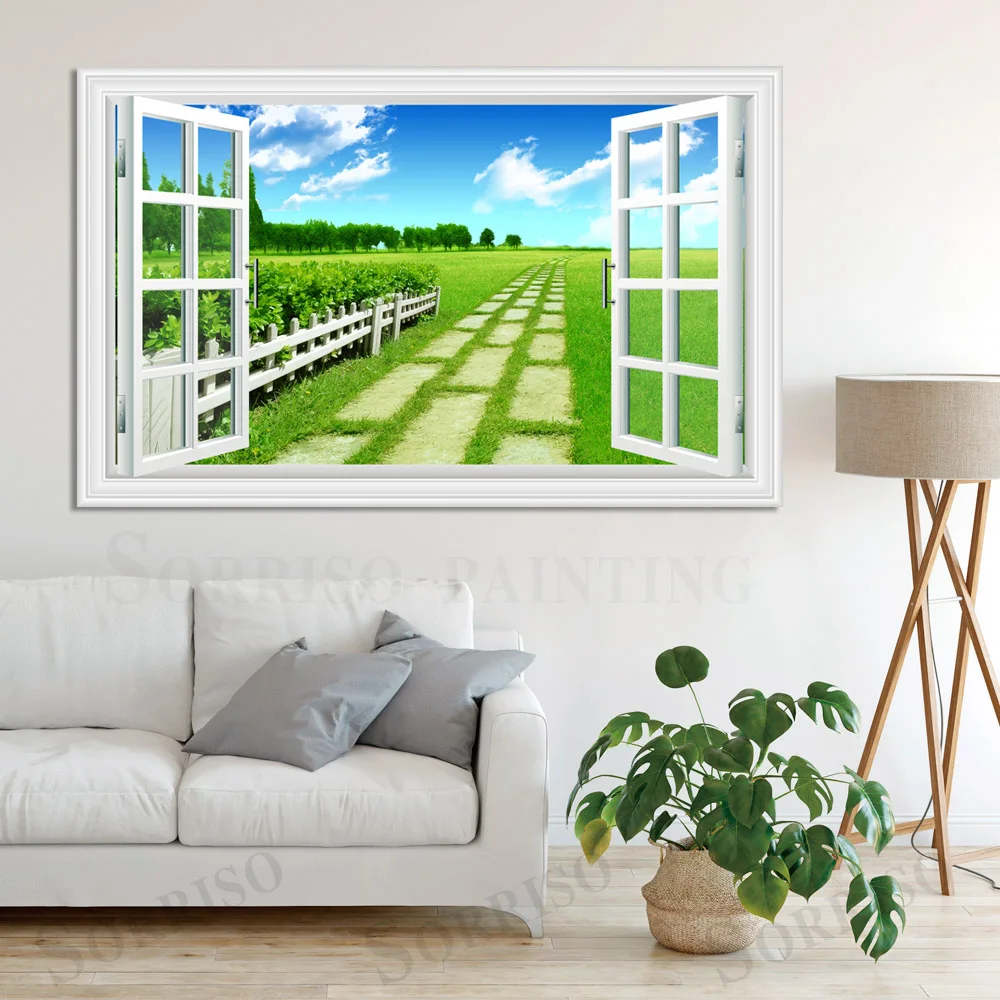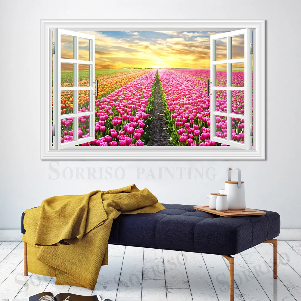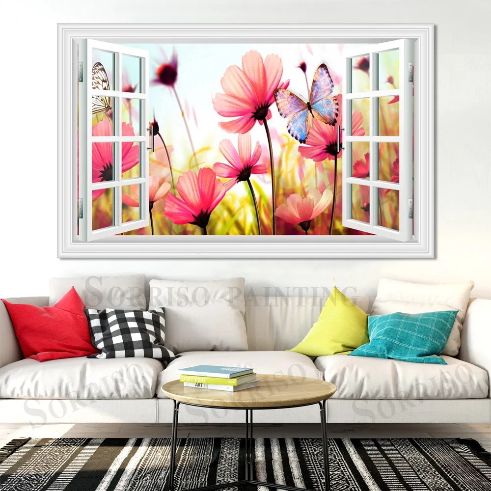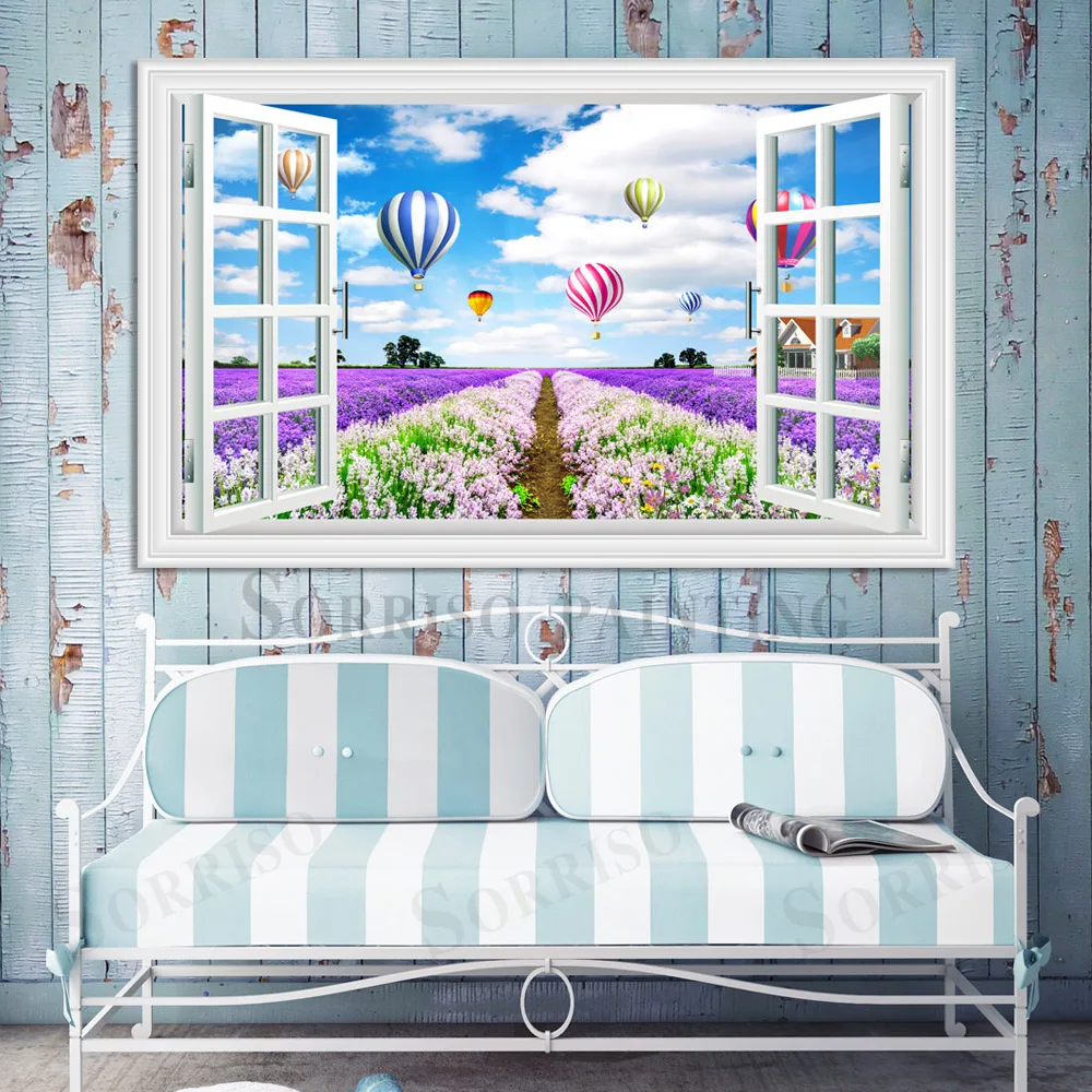 Лаванда Подсолнух цветы имитация окна дизайн стены Искусство Холст живопись плакаты и принты картины Декор для дома гостиной