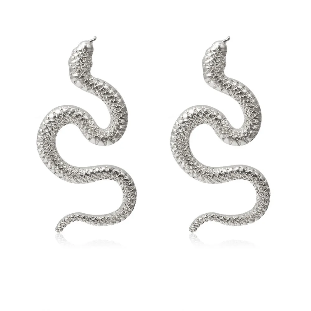 Серьги-гвоздики женские из металла с тиснением, 2021, серьга со змеями