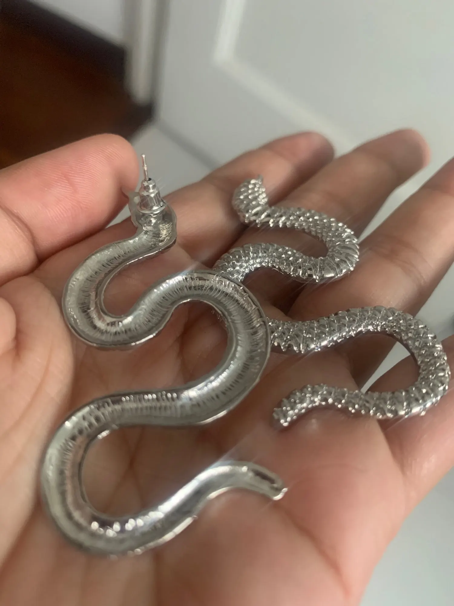 Серьги-гвоздики в форме змеи с геометрическим рисунком