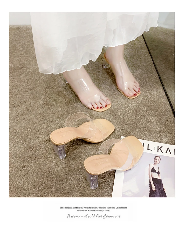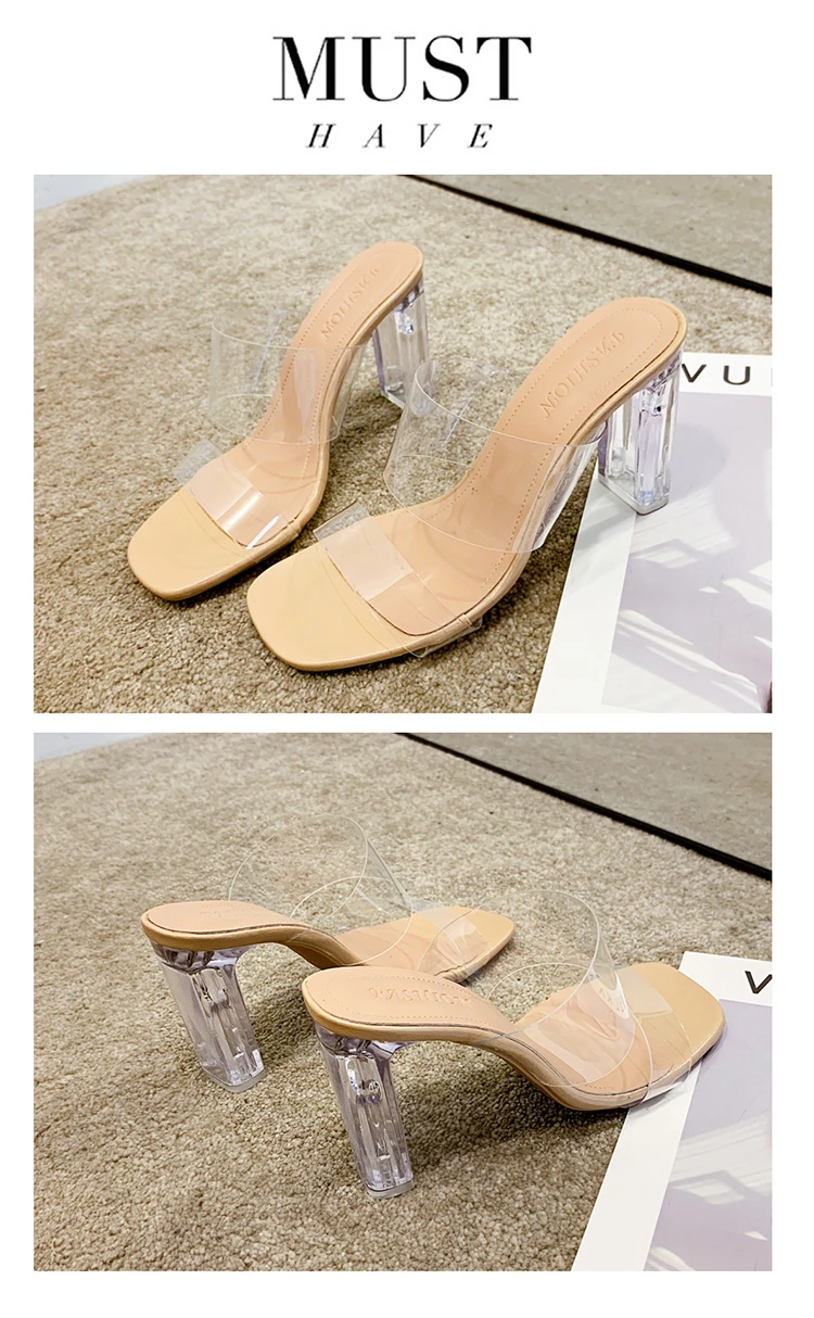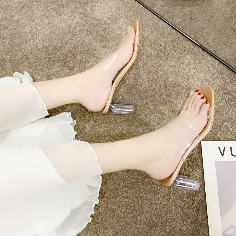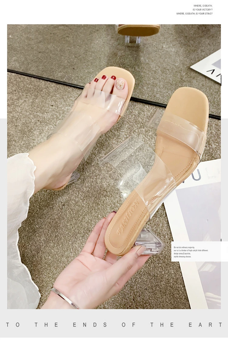 2020 горячие прозрачные каблуки женские сандалии-шлепанцы летние ту...