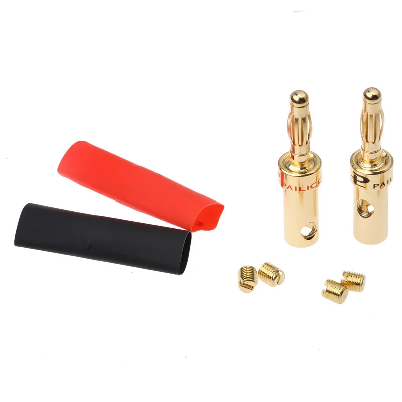 4 шт. разъемы с вилками типа банан, золотой Динамик кабель провод адаптеры для вилок Медь прямые разъемы для музыкальный аудио с термоусадочные трубки комплект