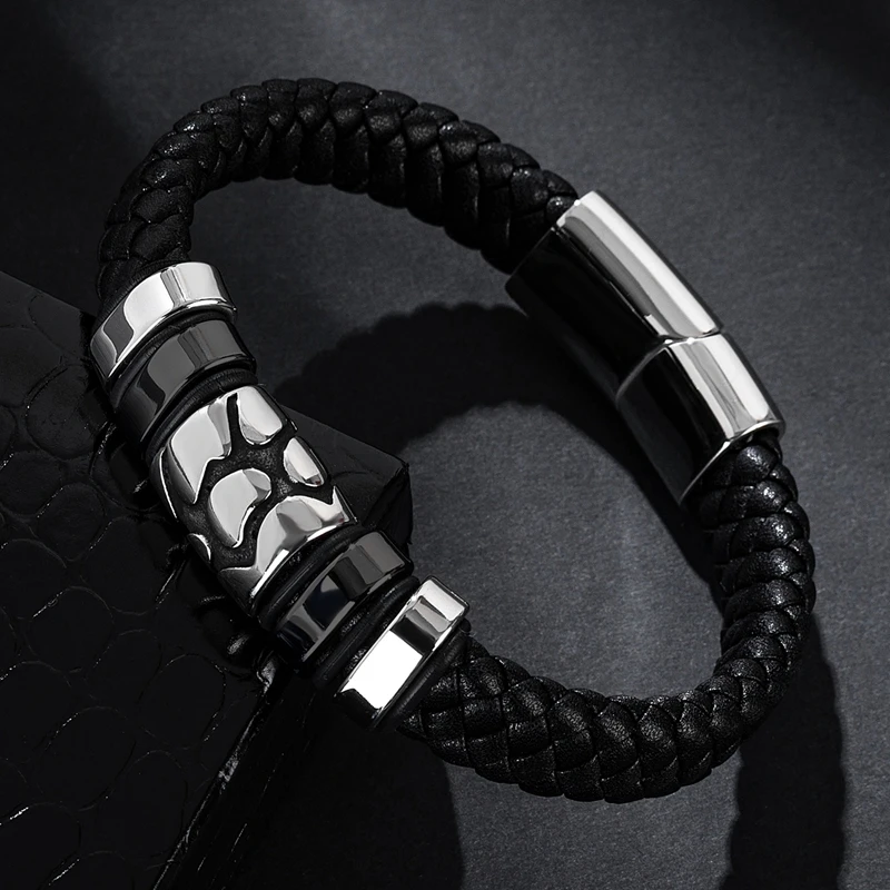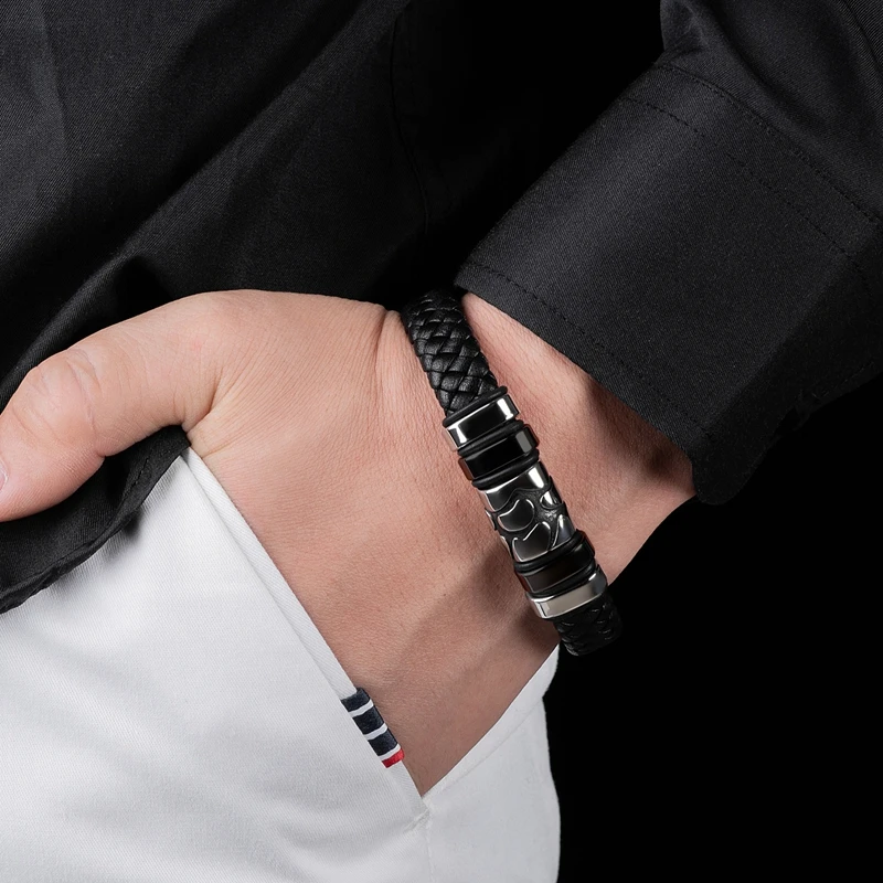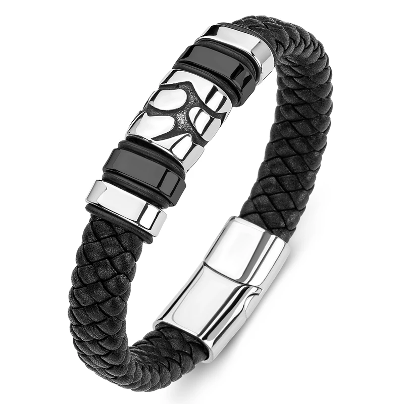 Браслет мужской кожаный плетеный, из нержавеющей стали, магнитный, ...
