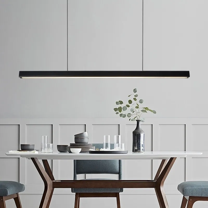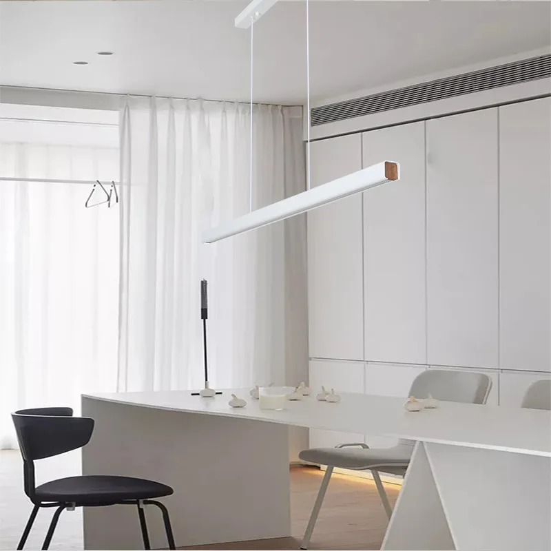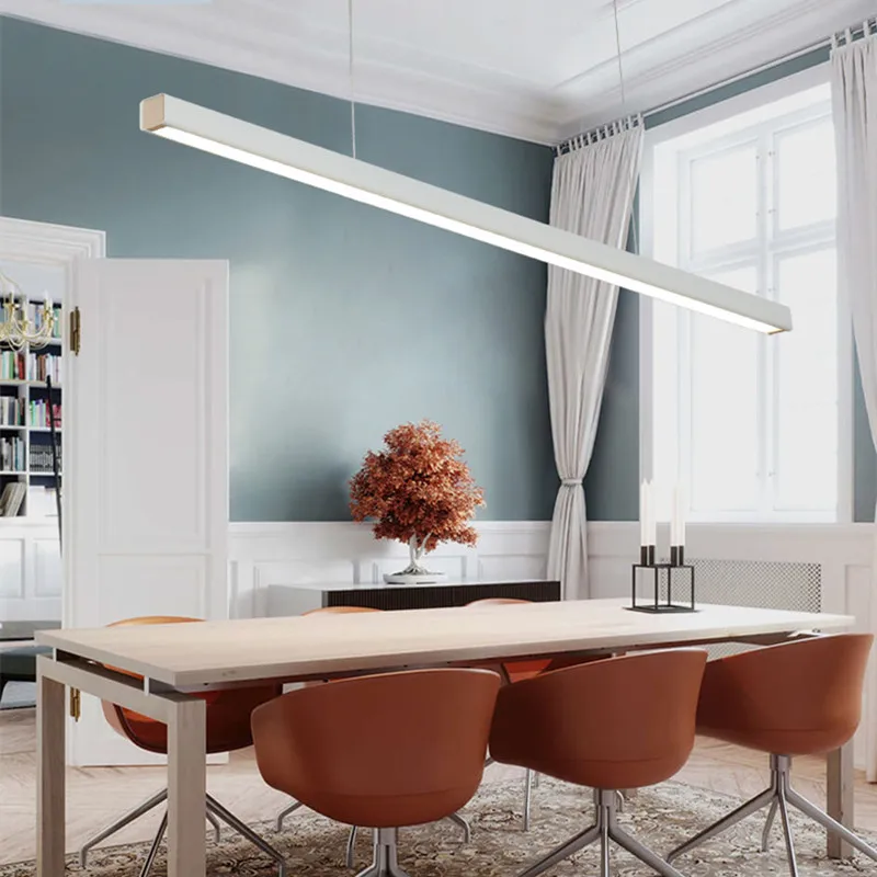 Современный линейный подвесной светильник, офисный потолочный светильник из белого и черного дерева, длинная Люстра для столовой, светодиодный потолочный светильник