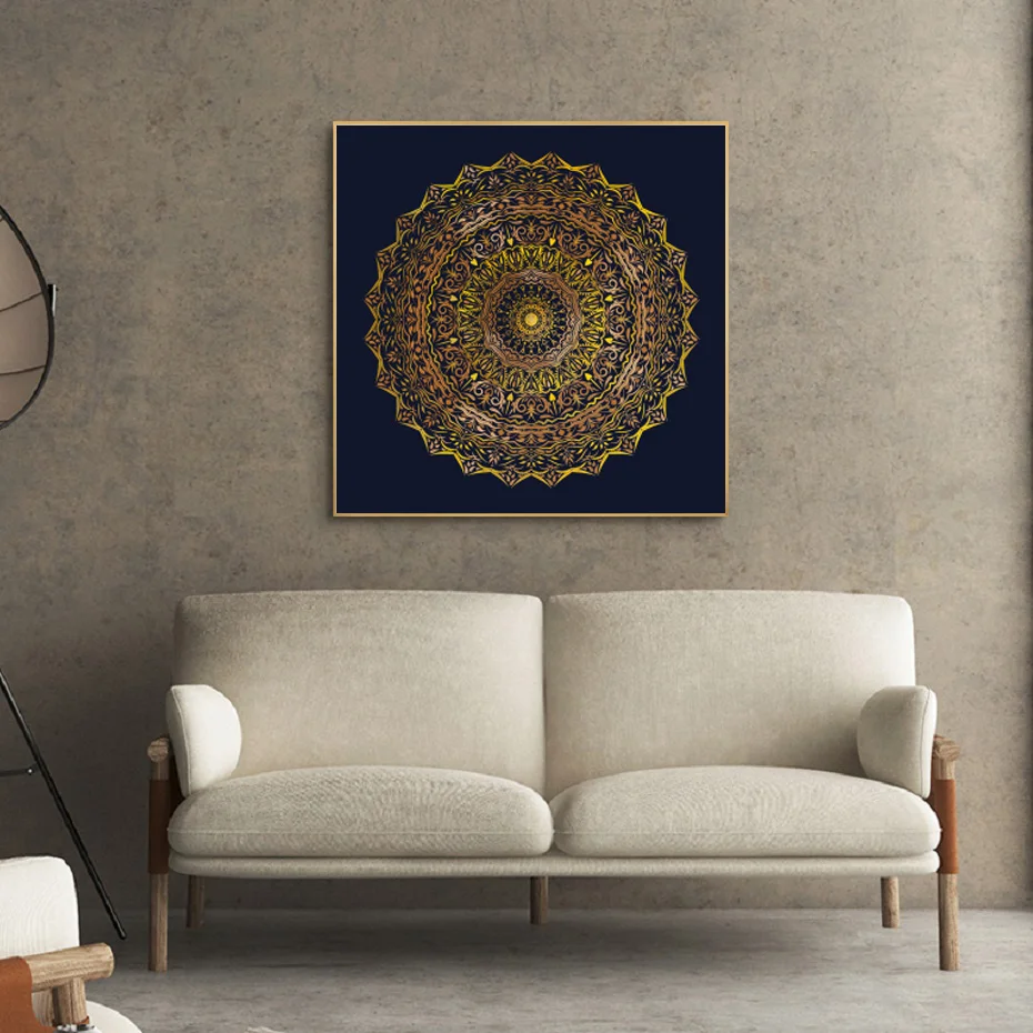 Черно-Золотая Красивая круглая мандала, изысканный узор, декоративная живопись постер холст, печать, спальня, гостиная, дом, Декор