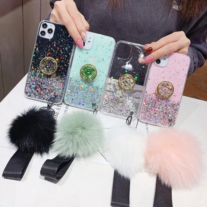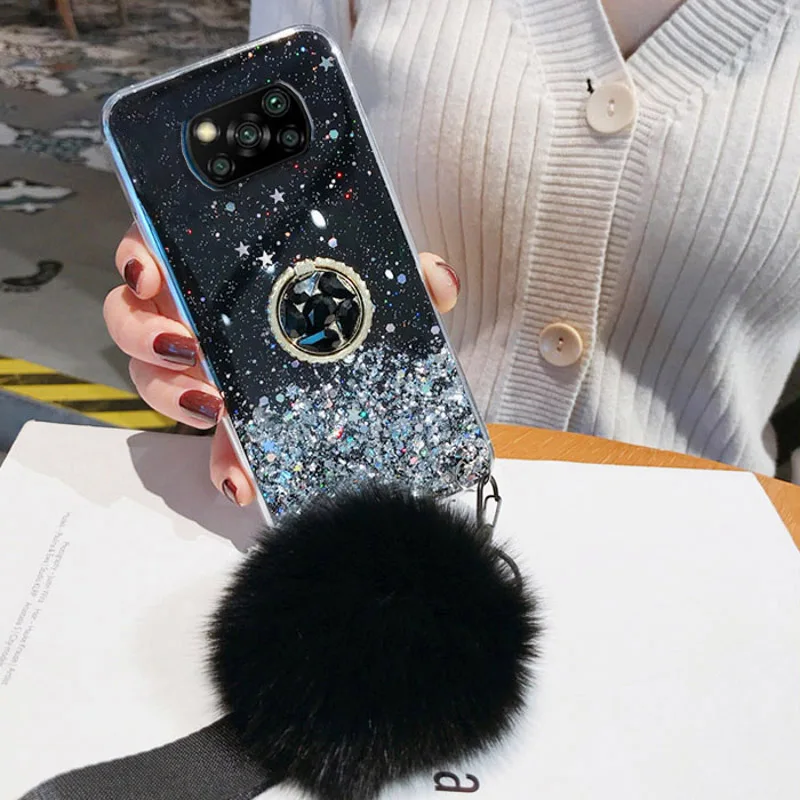 Чехол Poco X3 Pro, роскошный блестящий чехол с держателем для Xiaomi Poco F3 M3 F2 Pro, чехлы PocoX3 X3Pro с бампером с помпоном