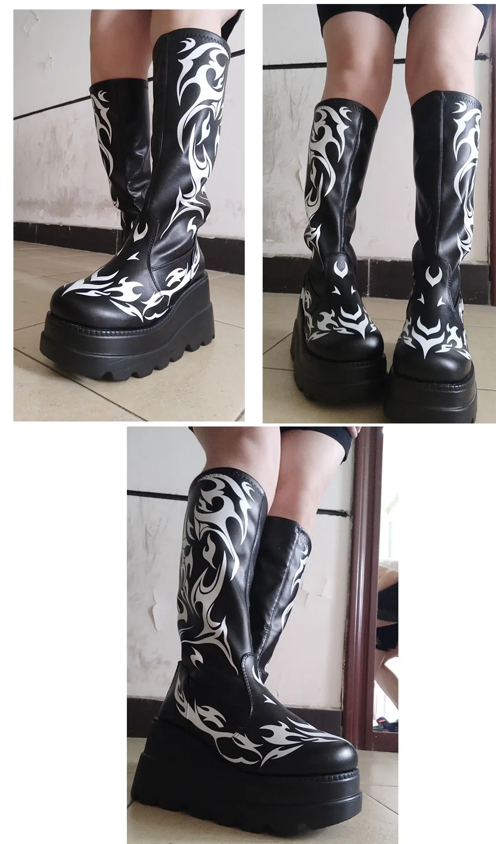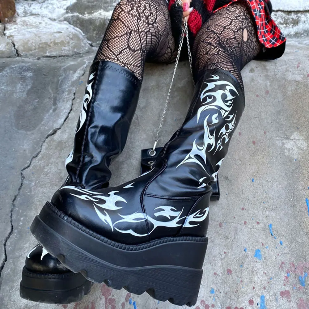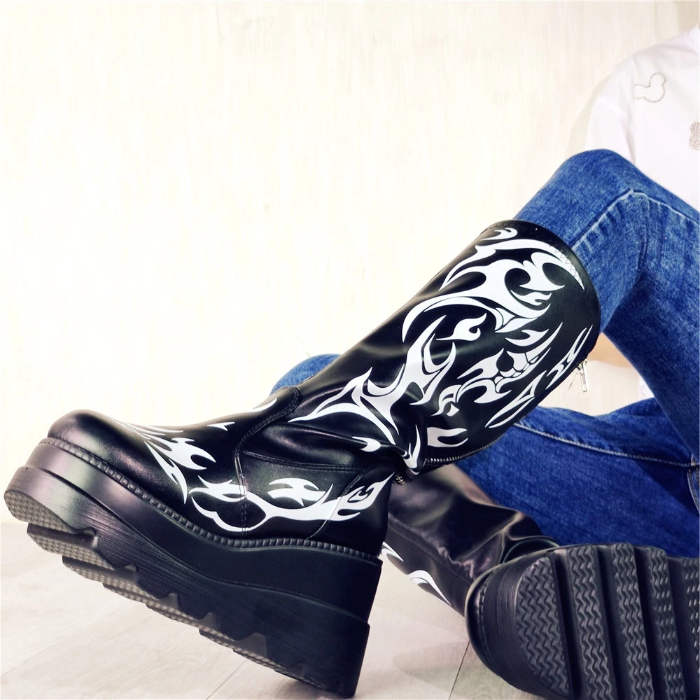 Женские мотоциклетные ботинки на платформе, черные ботинки до щиколотки на высоком каблуке, на молнии, в готическом стиле, обувь на танкетке, большой размер 43,