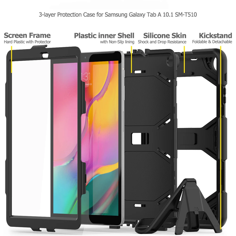 Противоударный силиконовый чехол для планшета samsung galaxy tab a 10,1 T510 T515 2019, чехлы со съемной подставкой, противоударный чехол