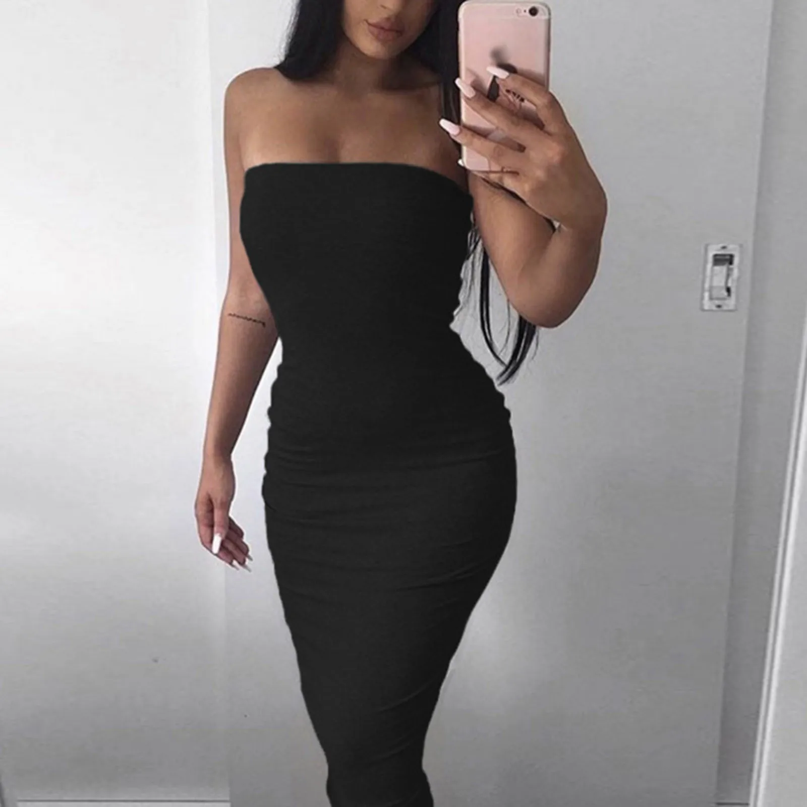 Женское черное платье, однотонное соблазнительное платье-футляр с рюкзаком, облегающее платье на бедрах, летние платья 2021, облегающее платье