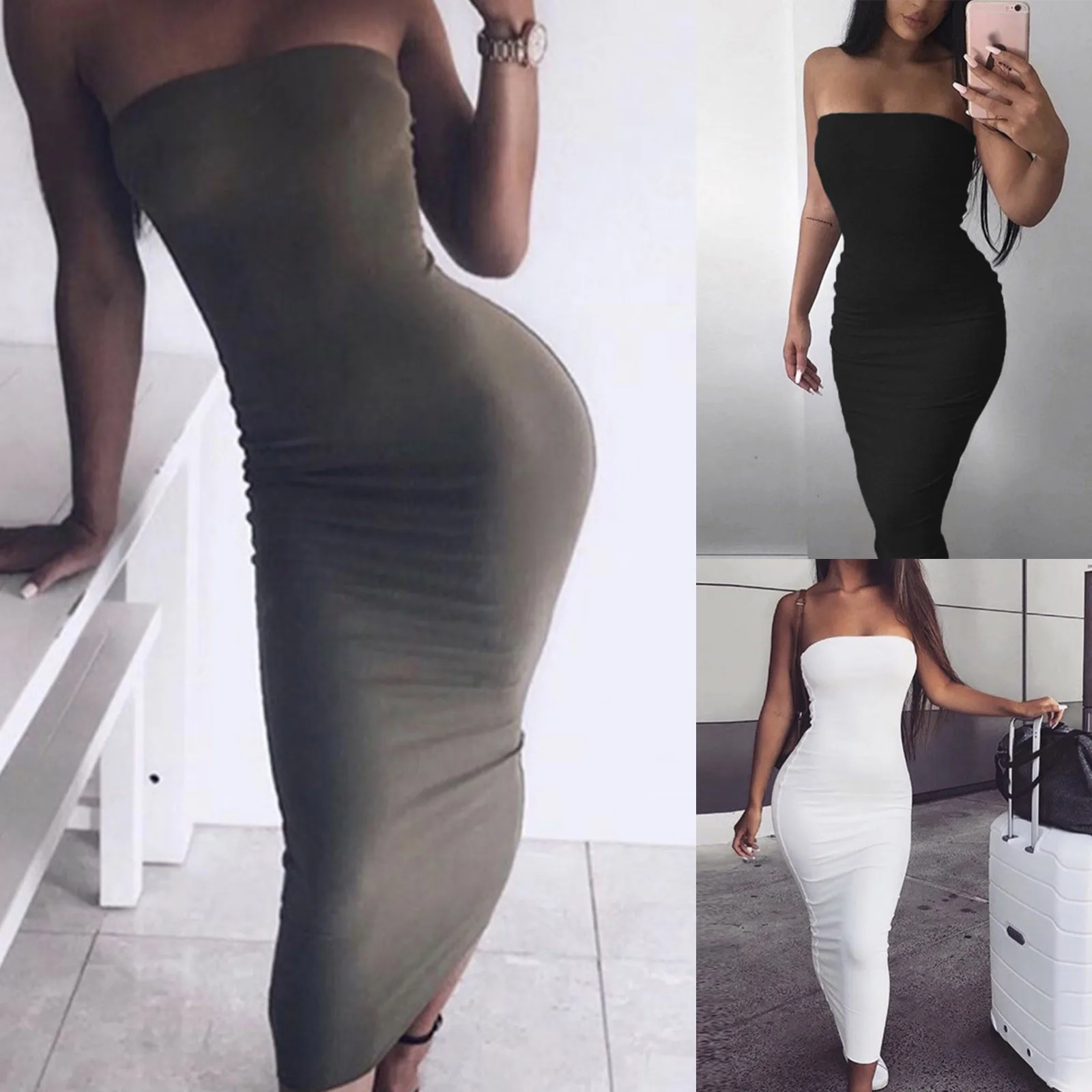 Элегантное однотонное платье для женщин, удобное облегающее платье-...