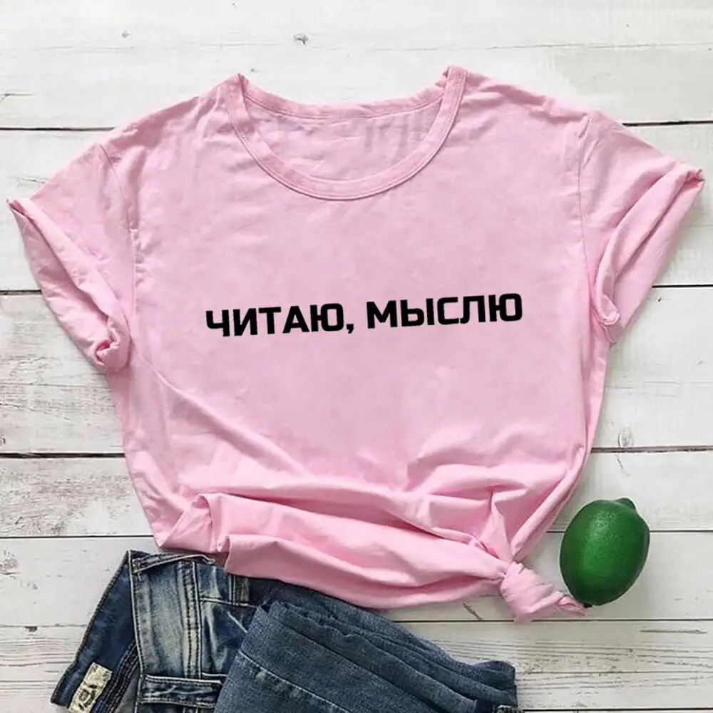 Чтение мысли русской кириллицей 100% хлопок женские футболки для мальчиков и девочек Забавные Повседневная летняя футболка с короткими рукавами Топ, футболка со слоганом подарок рубашки для мальчиков