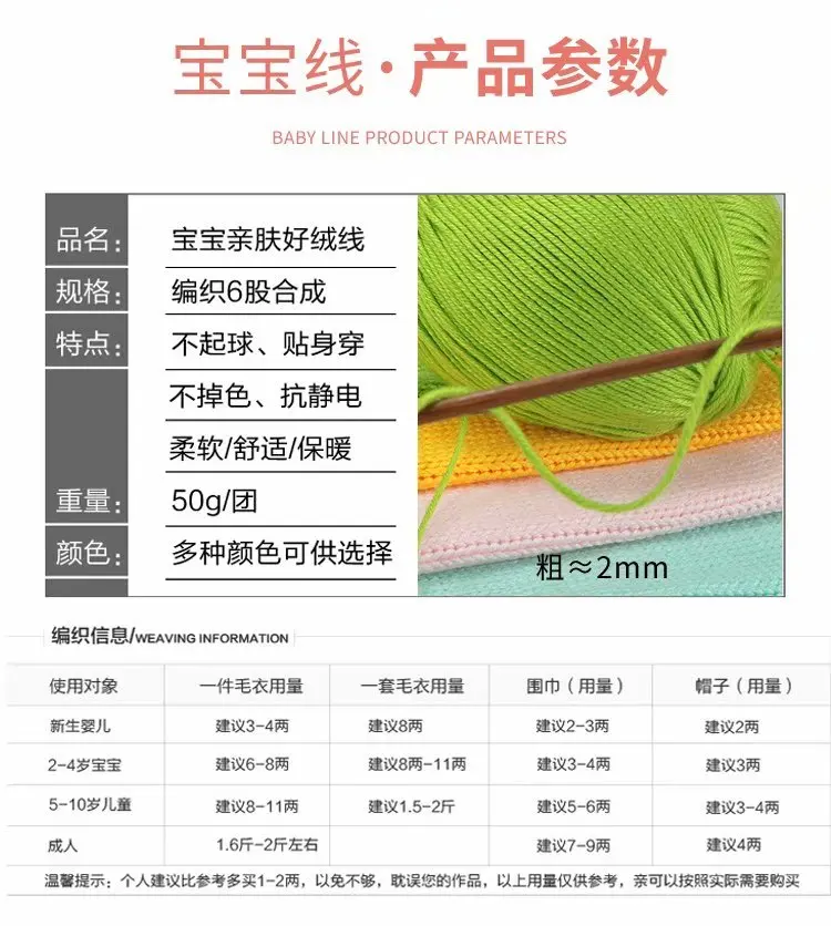 Пряжа для вязания, 6-нитка для вязания крючком, мягкая теплая детск...