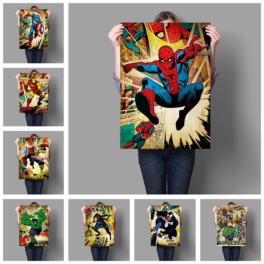 Marvel Человек-паук Железный человек супергерой ретро печать Аниме ...