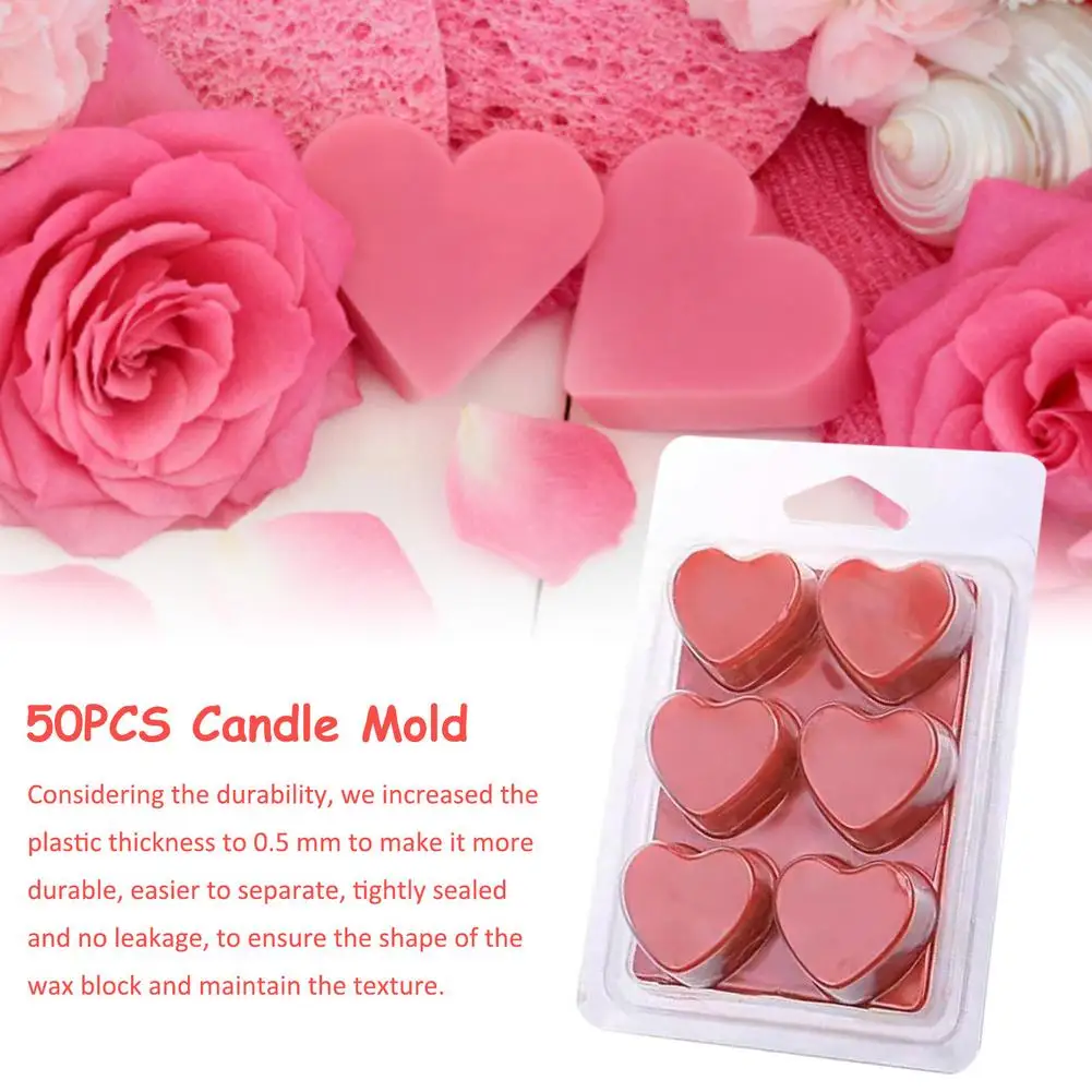 50 шт. коробки для изготовления свечей, контейнеры для расплава воска в форме сердца, прозрачные пластиковые корпуса, формы для бесфитильных свечей, формочки для воска, инструмент для изготовления воска