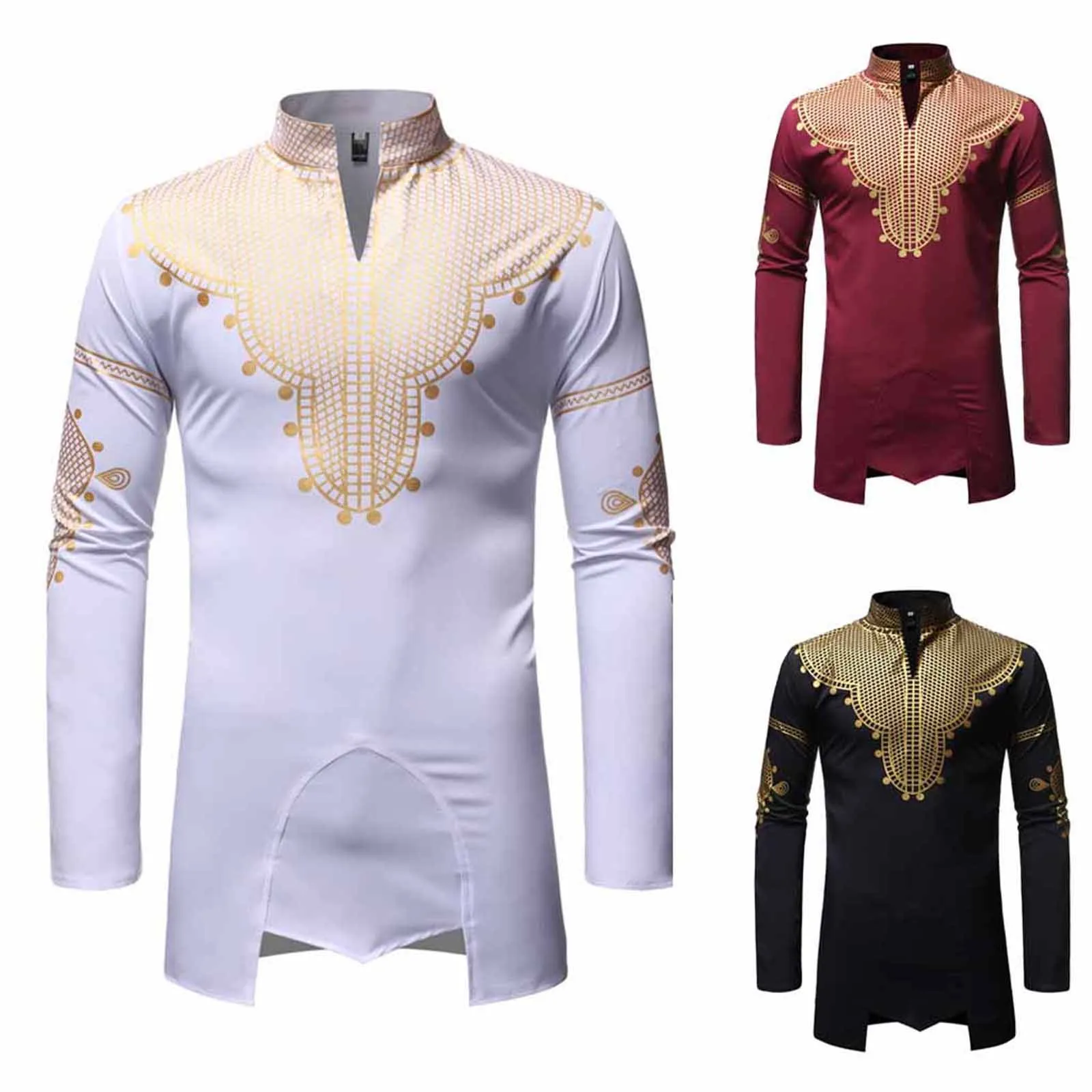 Мужская воротник-стойка, платье с красочными принтами, для банкета, нерегулярные рубашка, топ, блузка, модная, повседневная, на кнопках, большой Размеры Топ
