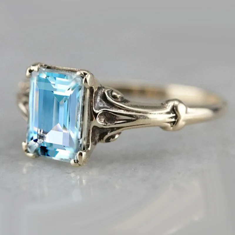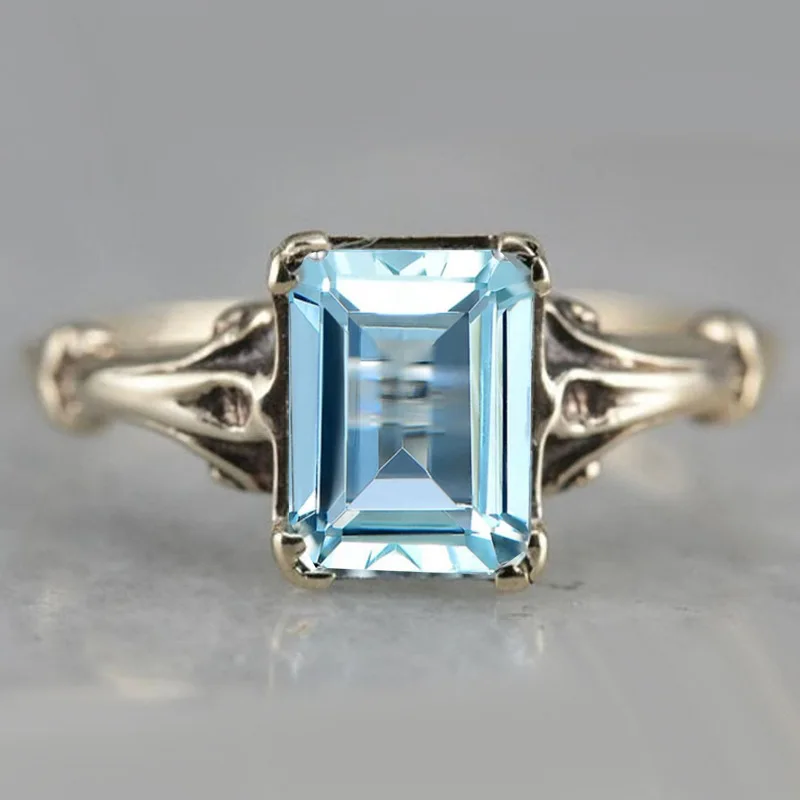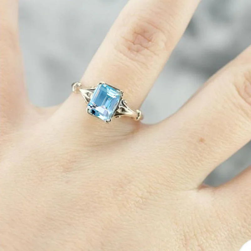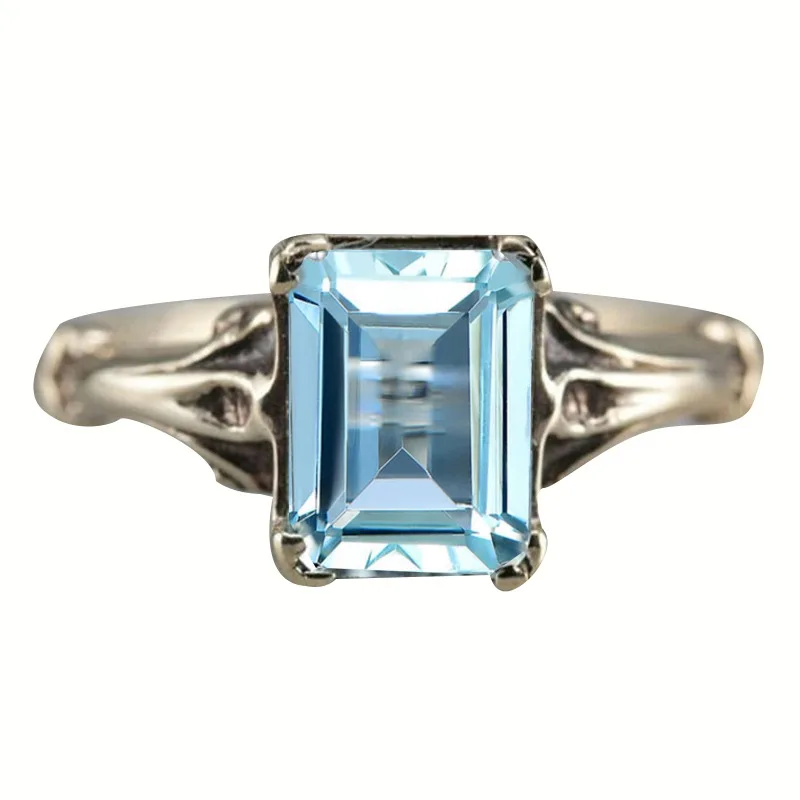 Очаровательный Женский комплект колец с синим кристаллом и камнем Роскошные Большие серебряные обручальные кольца для женщин винтажные Свадебные квадратные обручальные кольца