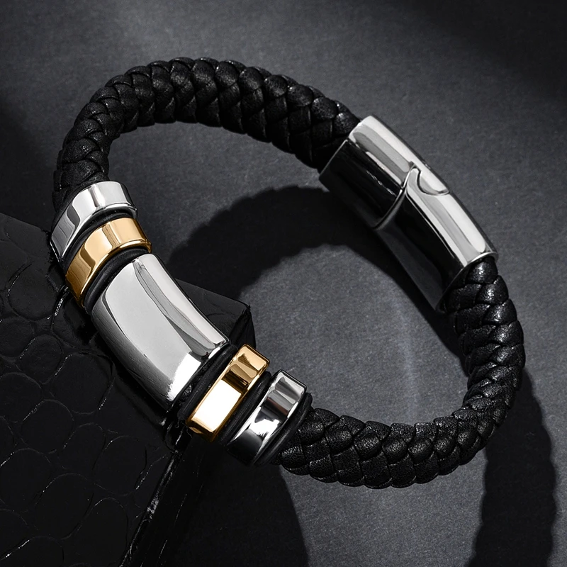 Модный плетеный кожаный браслет для мужчин, браслеты ручной работы в стиле панк-рок, мужские браслеты из нержавеющей стали, подарки для вечеринок P172