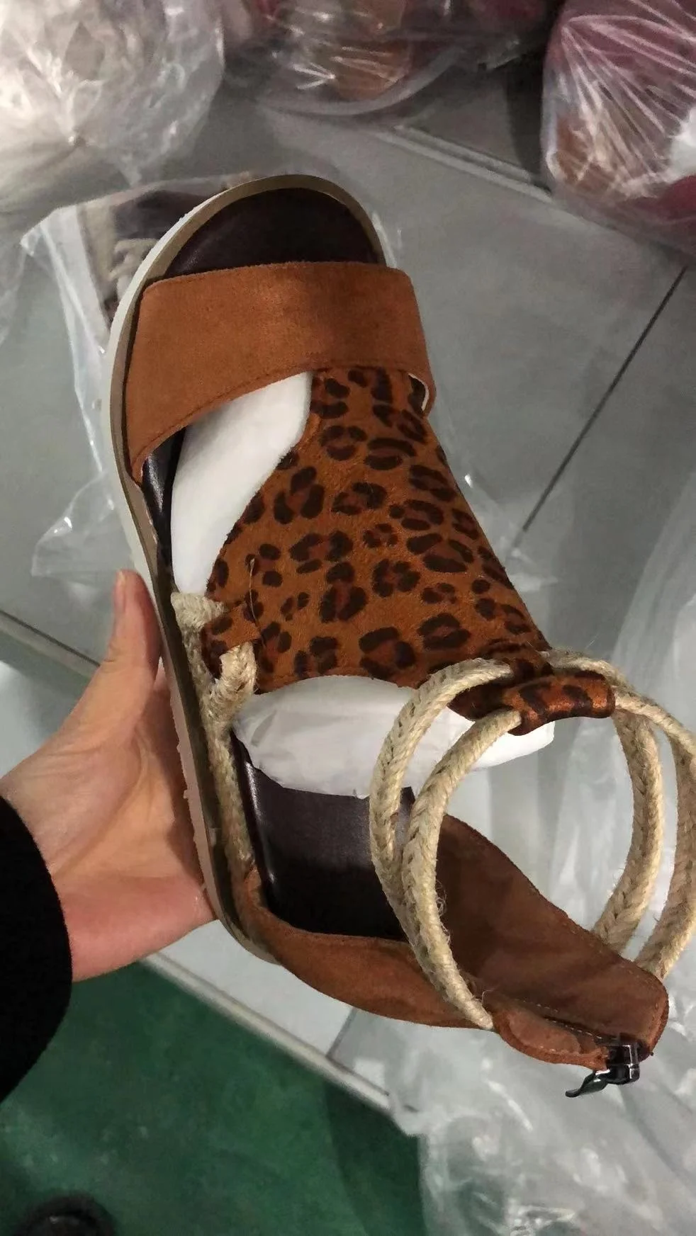 Сандалии женские плетеные с леопардовым принтом, шлепанцы на танкет...